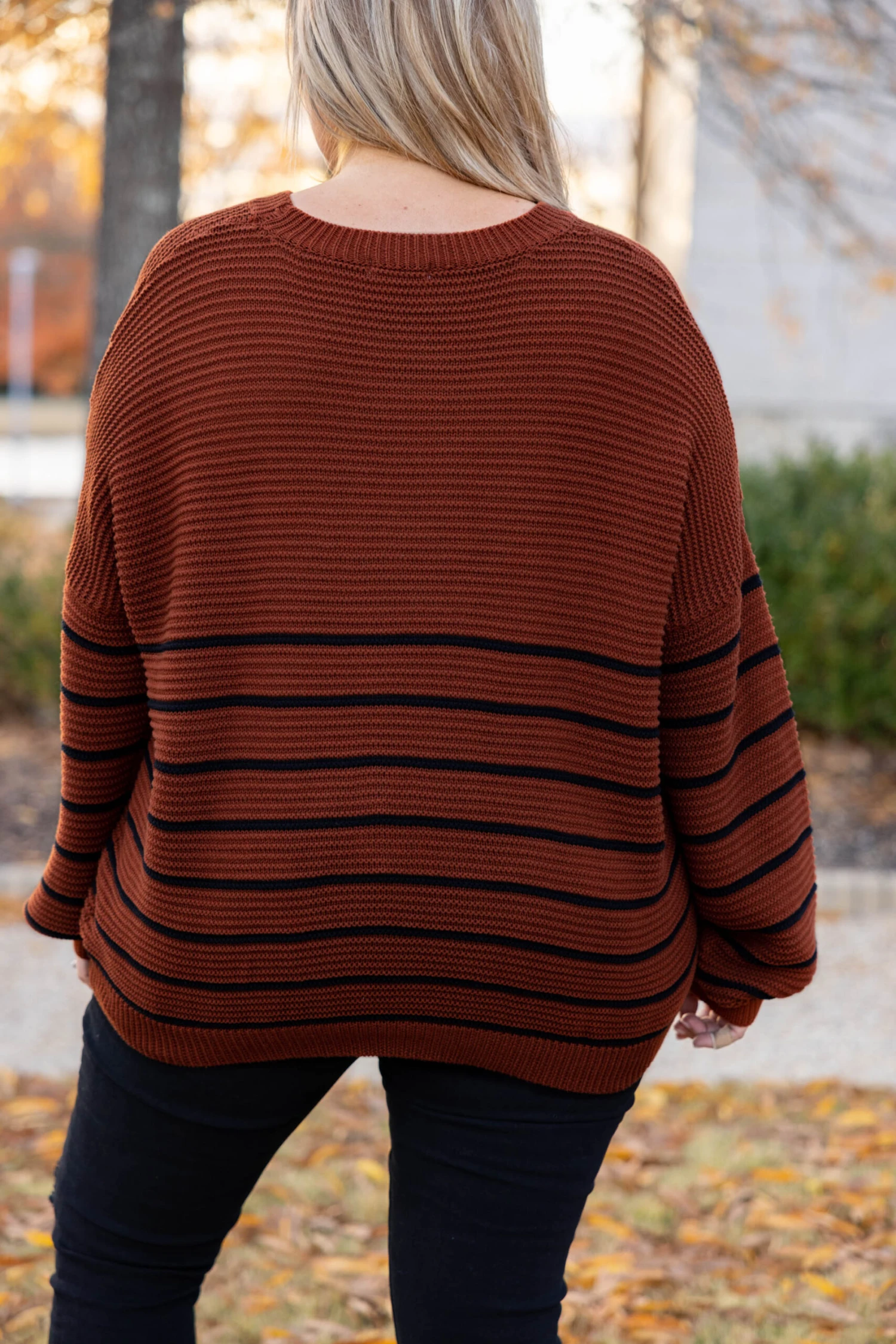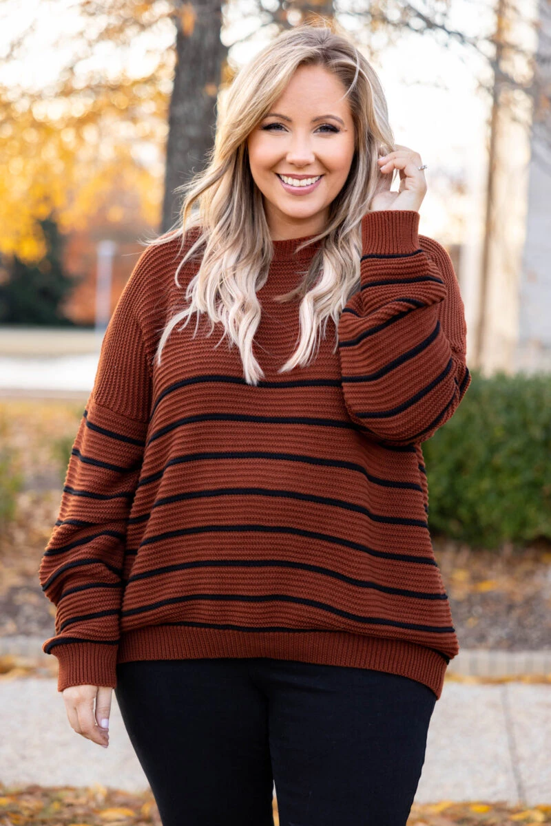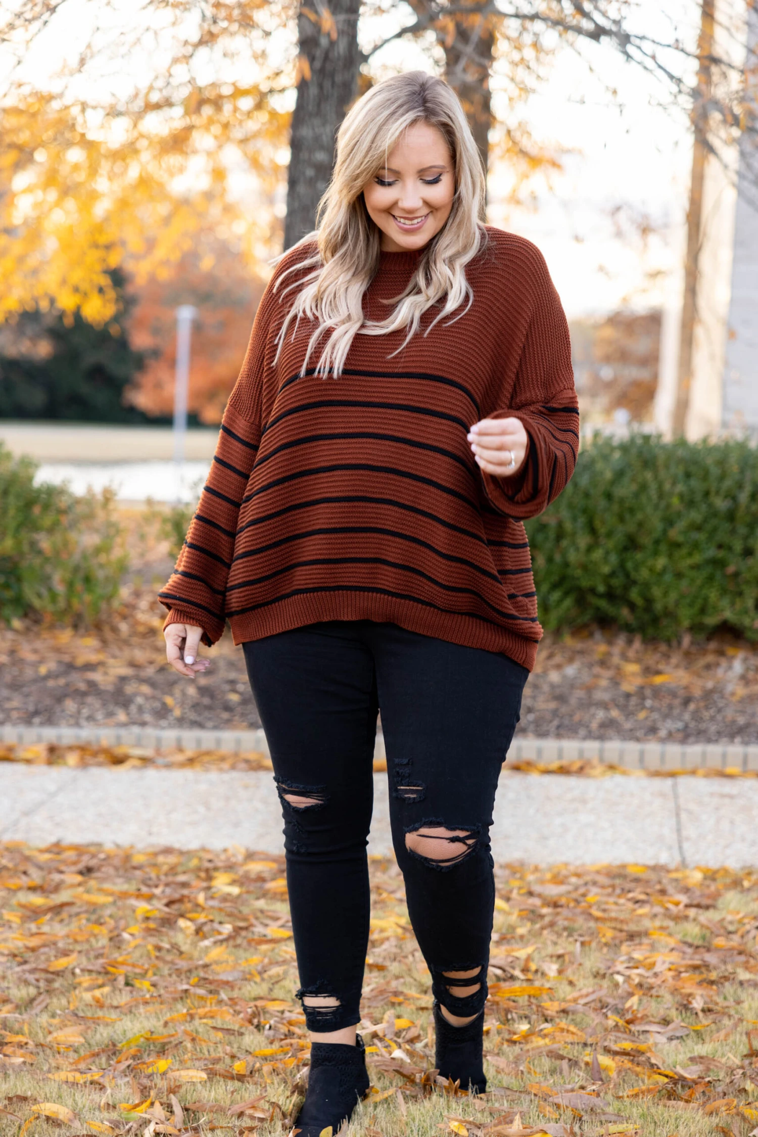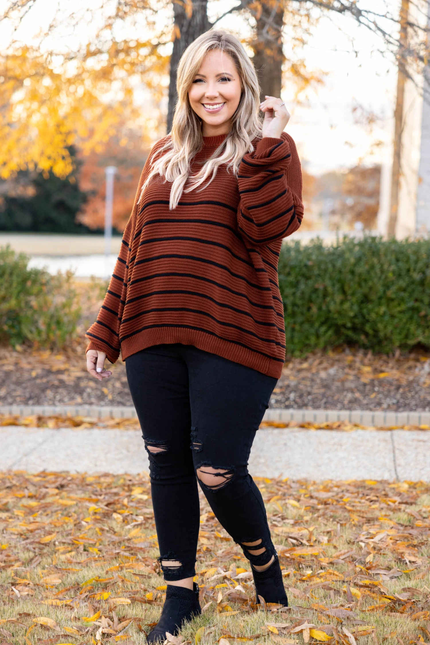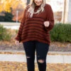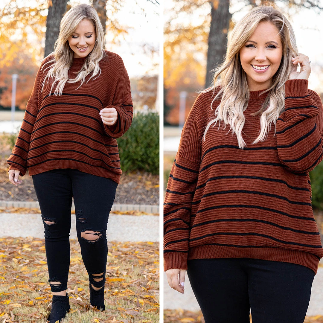 We love this top! It has a simple stripe pattern with neutral colors you can dress up or down and style for every occasion! It’s comfortable for all-day wear, has a relaxed fit to flatter your figure, and can be layered with your favorite outerwear! Simply style this sweater with skinnies and boots for an effortlessly chic look!Â