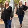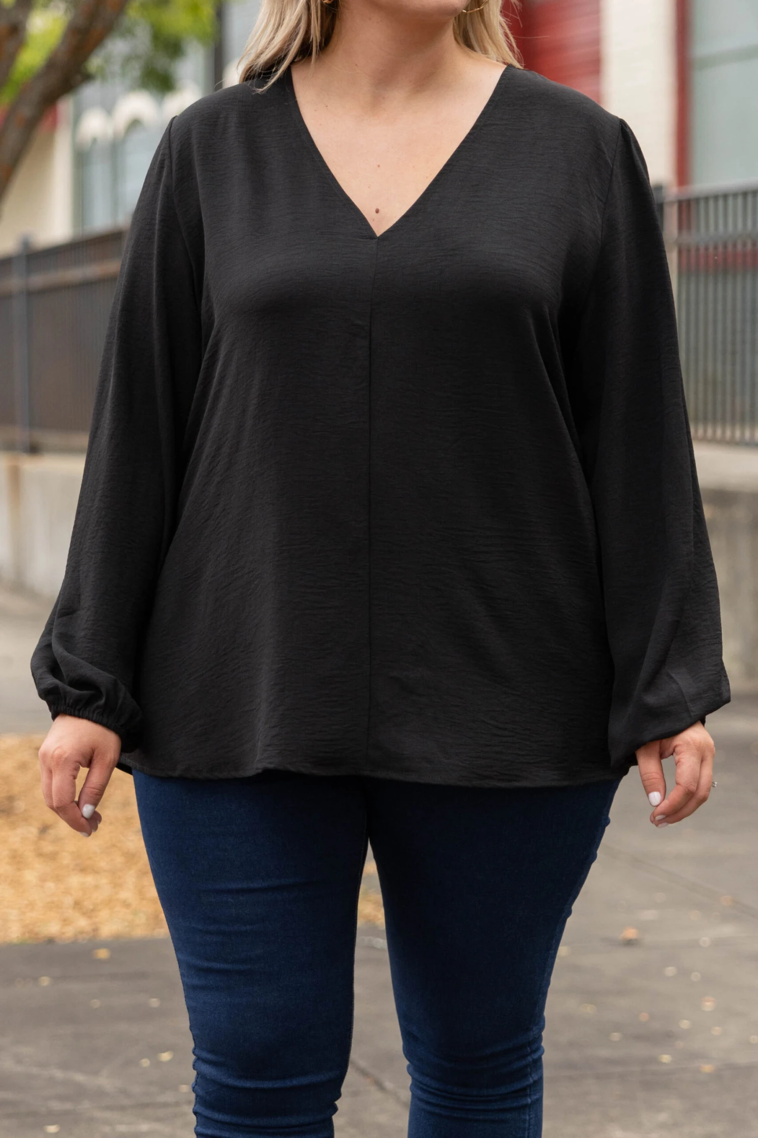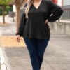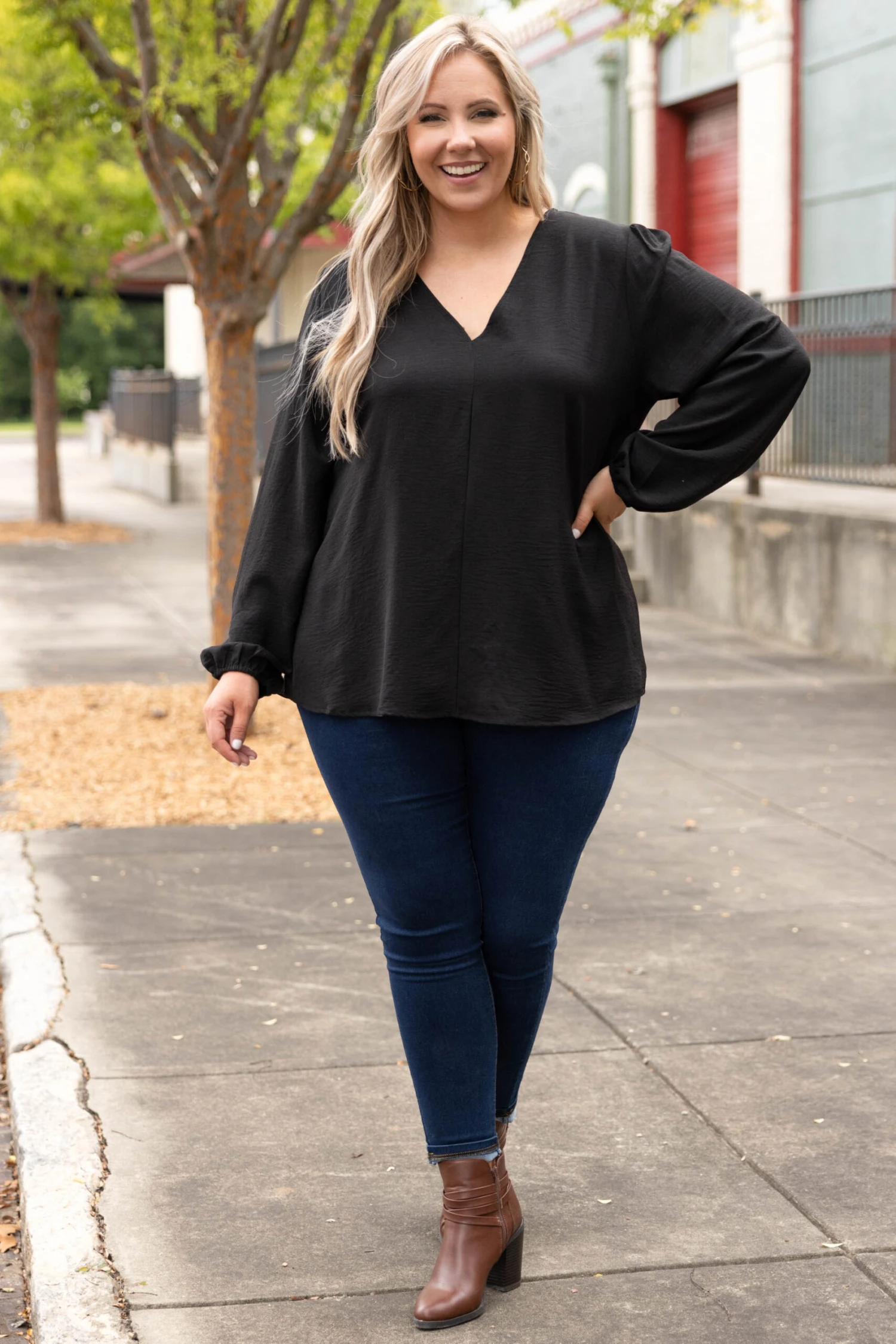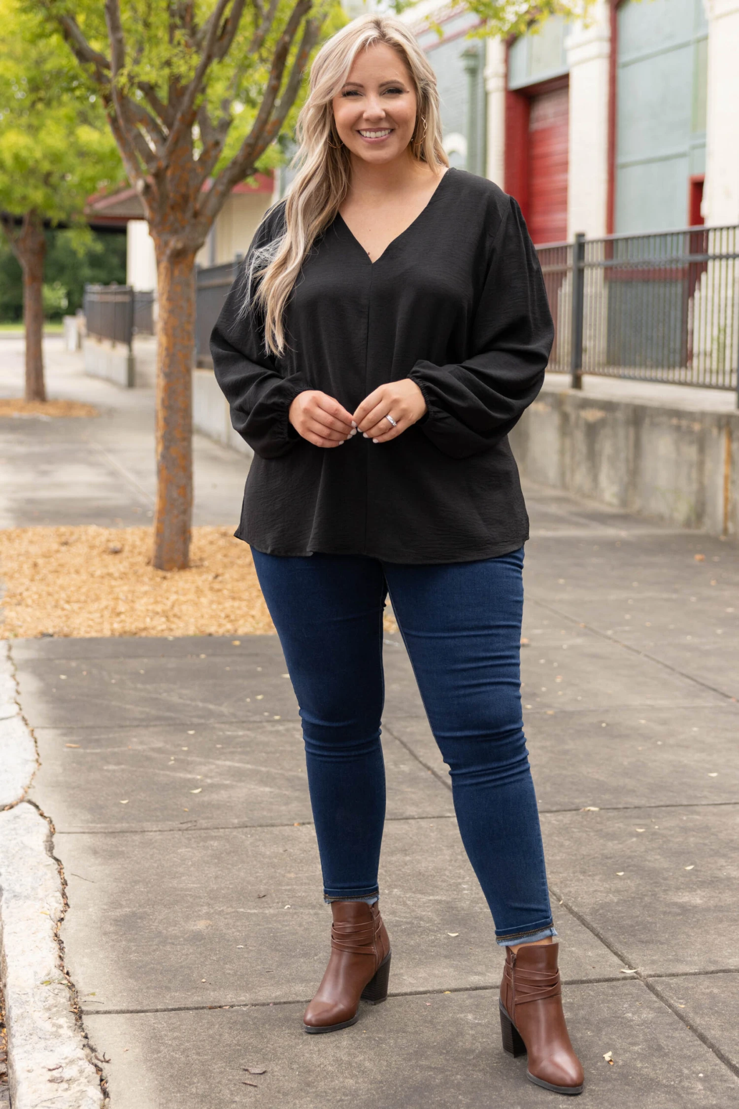 No need to second guess whether you need this top! This top has a lovely, black color and figure flattering fit that makes this a must-have for the season! The v-neck cut is so sweet! Simply style this top with a cute skirt or skinnies for a trendy, chic look!