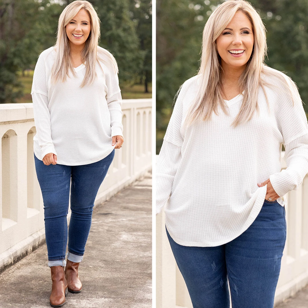 No rules are needed for how you can rock this top! This top has a solid neutral color you can dress up or down for every occasion! It’s comfortable for all-day wear, has a figure-flattering fit, and features a textured waffle knit fabric we adore! Style this top with skinnies and bold earrings for an effortlessly chic look!Â