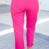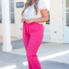 Feel so nice when you wear these amazing pants! These babes are so chic with the tie at the waist and the bold fuchsia color! These are neutral enough to pair with anything and the elastic waistband is comfy enough for all day wear! Pair these cuties with a fun top and some sandals for a chic look!