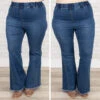 Enjoy a night out on the town in these comfy and cute jeans! These jeans have a trendy medium wash and a flare style that is super sweet! The elastic waistband ensures the perfect fit! Style these jeans with a cute top and booties for a classic chic look!