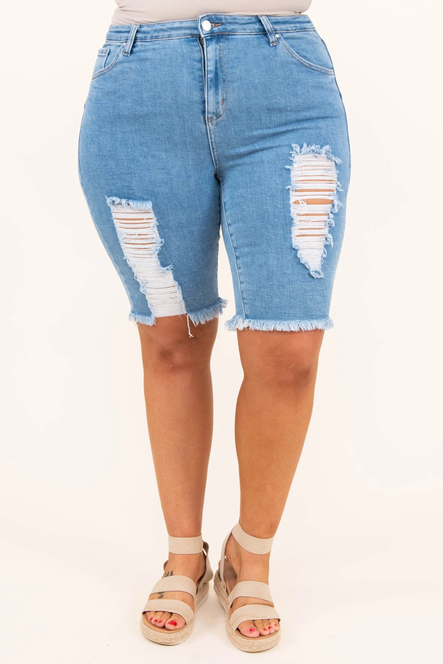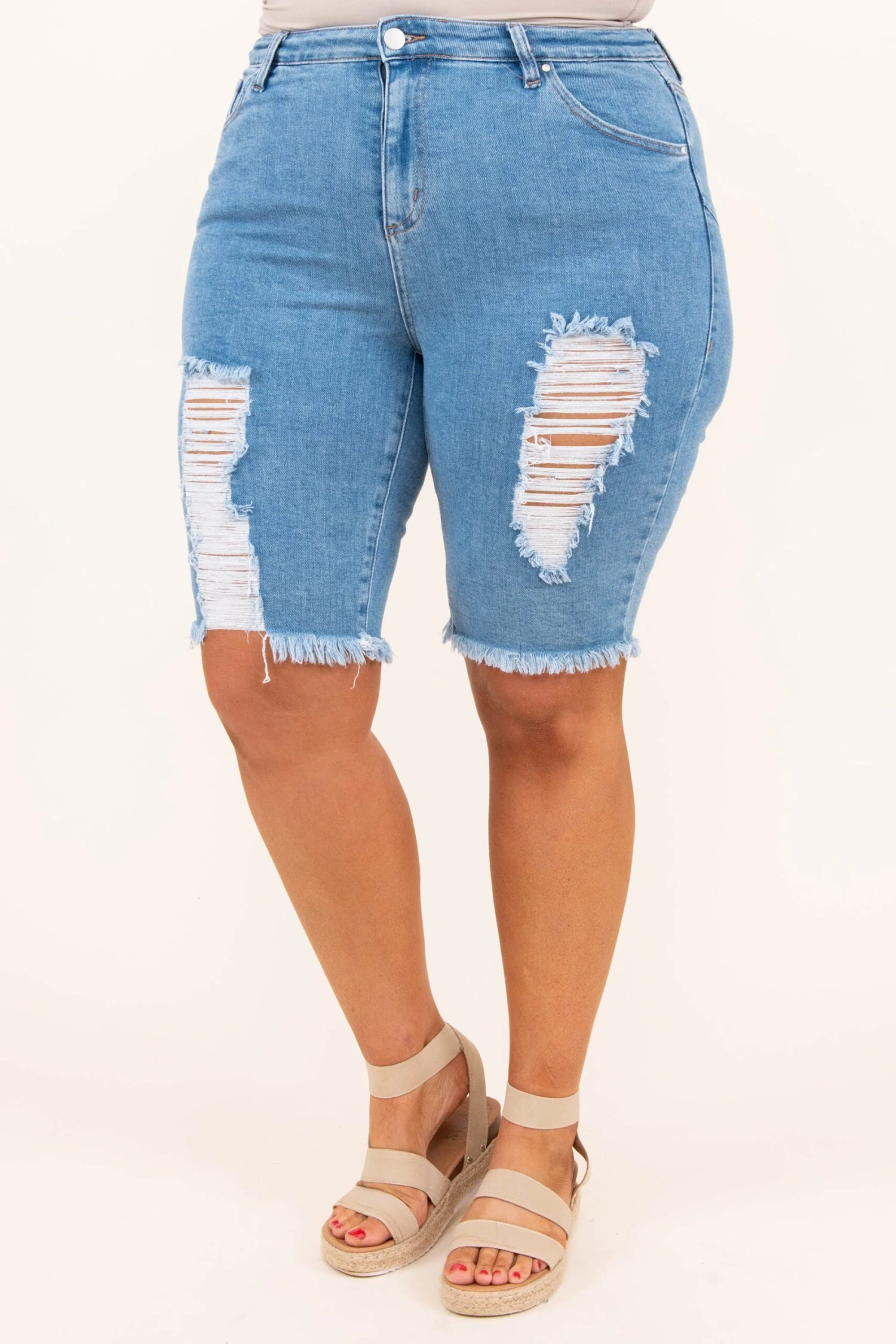 These shorts were made for anytime! These shorts have a classic light wash you can style with your favorite pieces! They’re comfortable for all-day wear, have a figure-flattering fit, and feature the cutest distressed and frayed hemline! Pair these shorts with a flowy top and shorts for an easy everyday look! Â