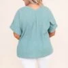 This is the top you can wear nine to five and beyond! This versatile piece has a solid color you can dress up or down and style for every occasion! It’s crinkle fabric is comfortable for all day wear, has an over sized fit, and features the cutest button-up design! Simply, wear this blouse with skinnies and wedges for an effortlessly chic look!Â