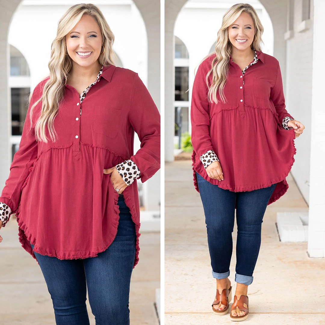 There’s no greater feeling than grabbing this top before it sells out! This top has a chic yet subtle leopard detailing with a frayed hemline! It is comfortable for all-day wear, has a flowy fit, and features the cutest design! Style this top with skinnies and wedges for an easy everyday look!