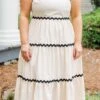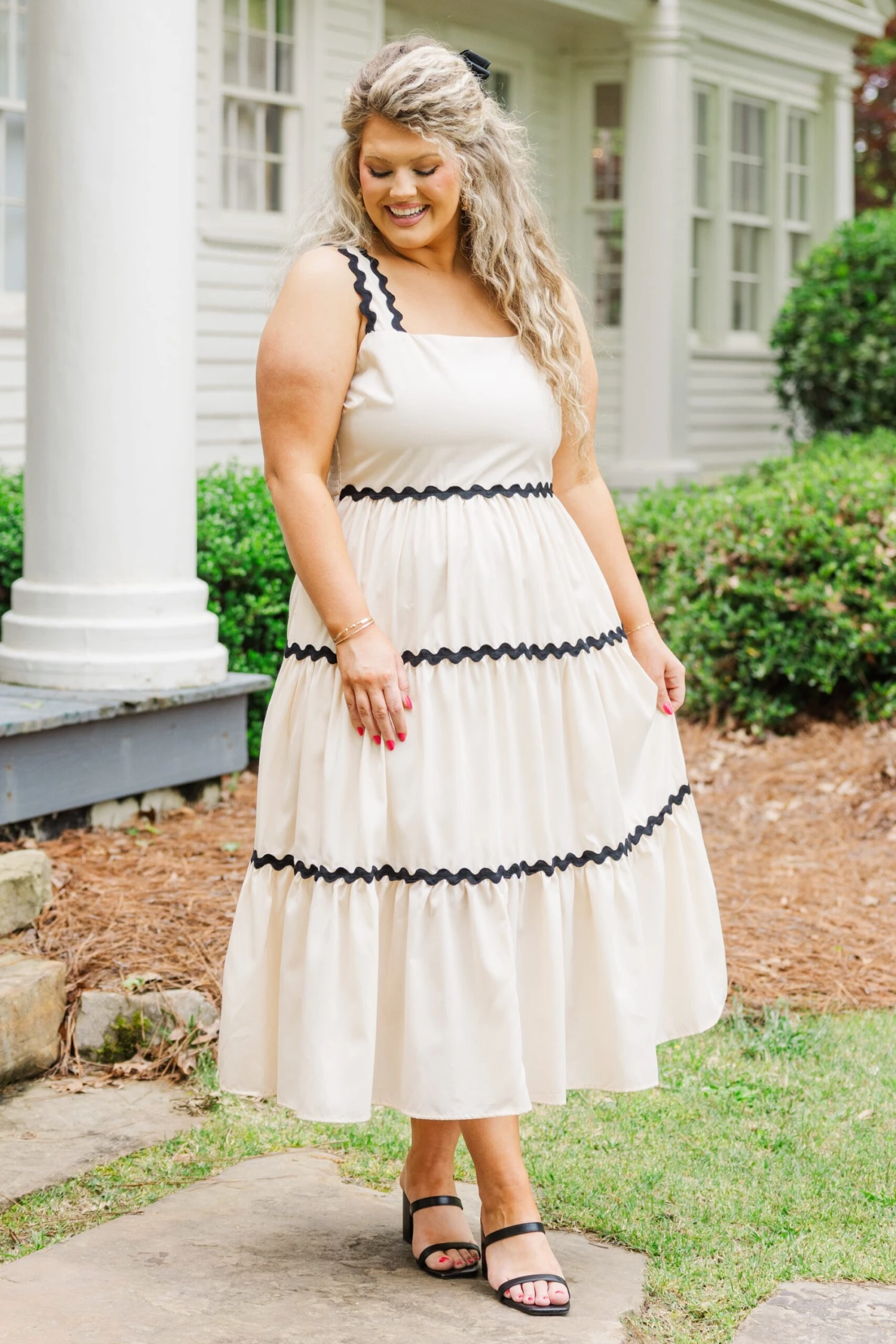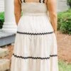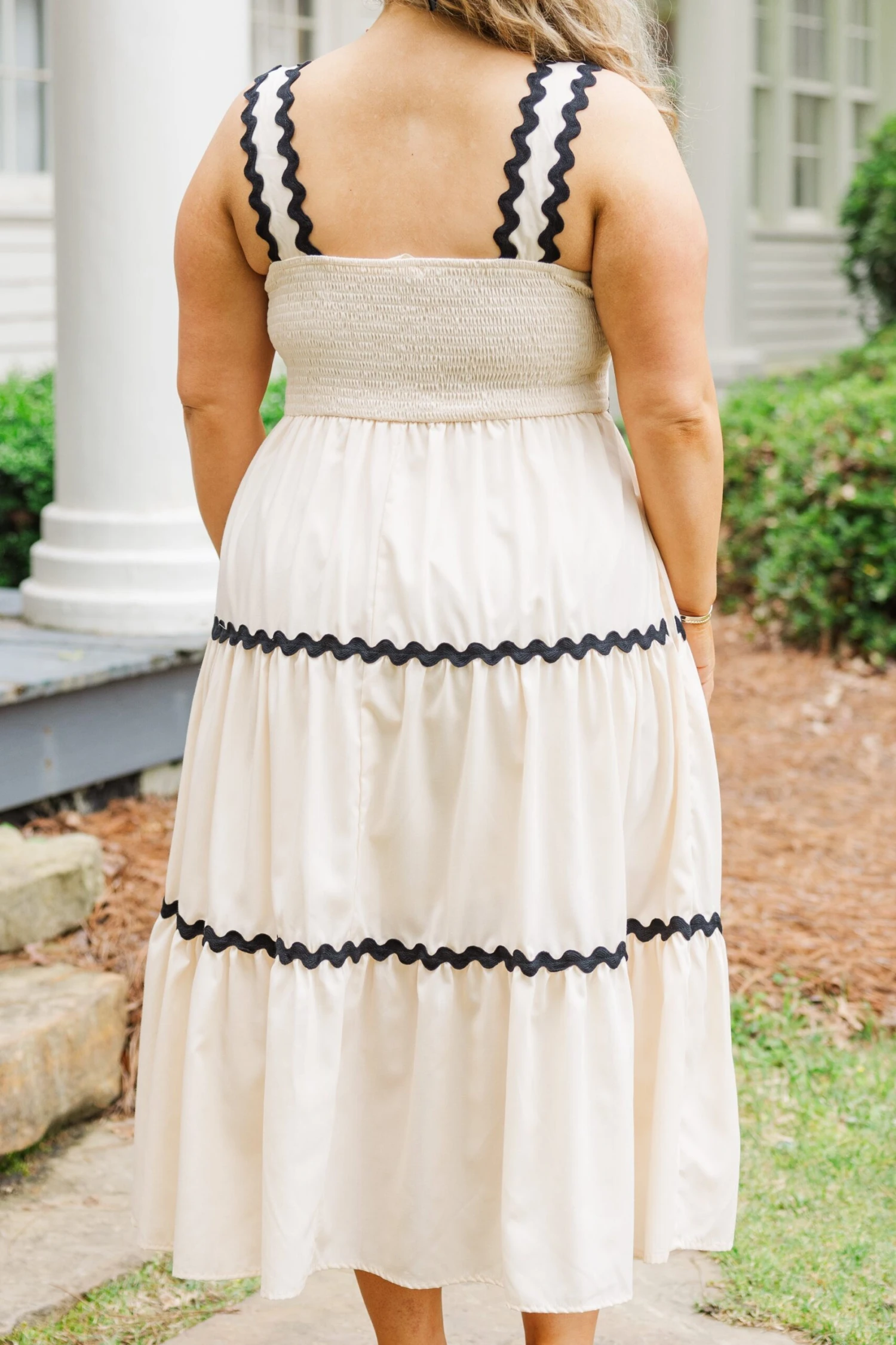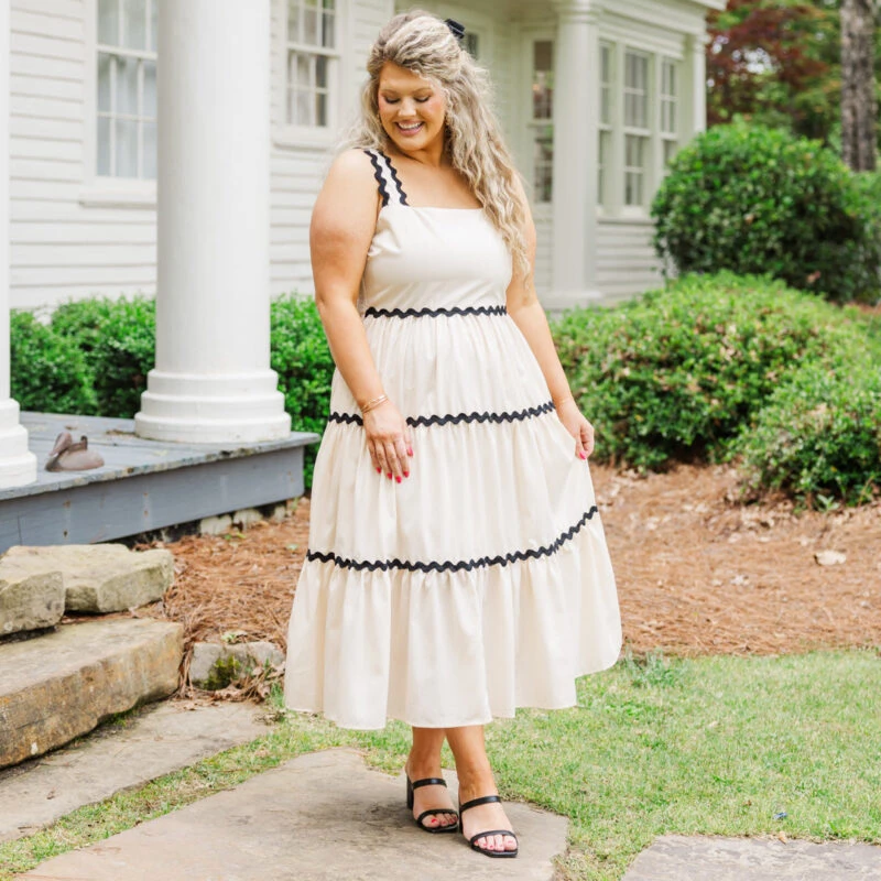 It’s no secret how refined you would be in this stunning mid-length ecru dress, meticulously crafted from high-quality fabric for a luxurious feel and exquisite drape! Embrace both elegance and comfort with the thoughtfully designed smocked back detail, ensuring a flattering and adjustable fit! Delicate lace detailing adorns the dress and straps, adding a touch of romantic allure to its timeless silhouette! But that’s not all – functional pockets blend seamlessly into the design, offering both style and practicality! This dress promises to enchant with its effortless grace and versatile appeal!