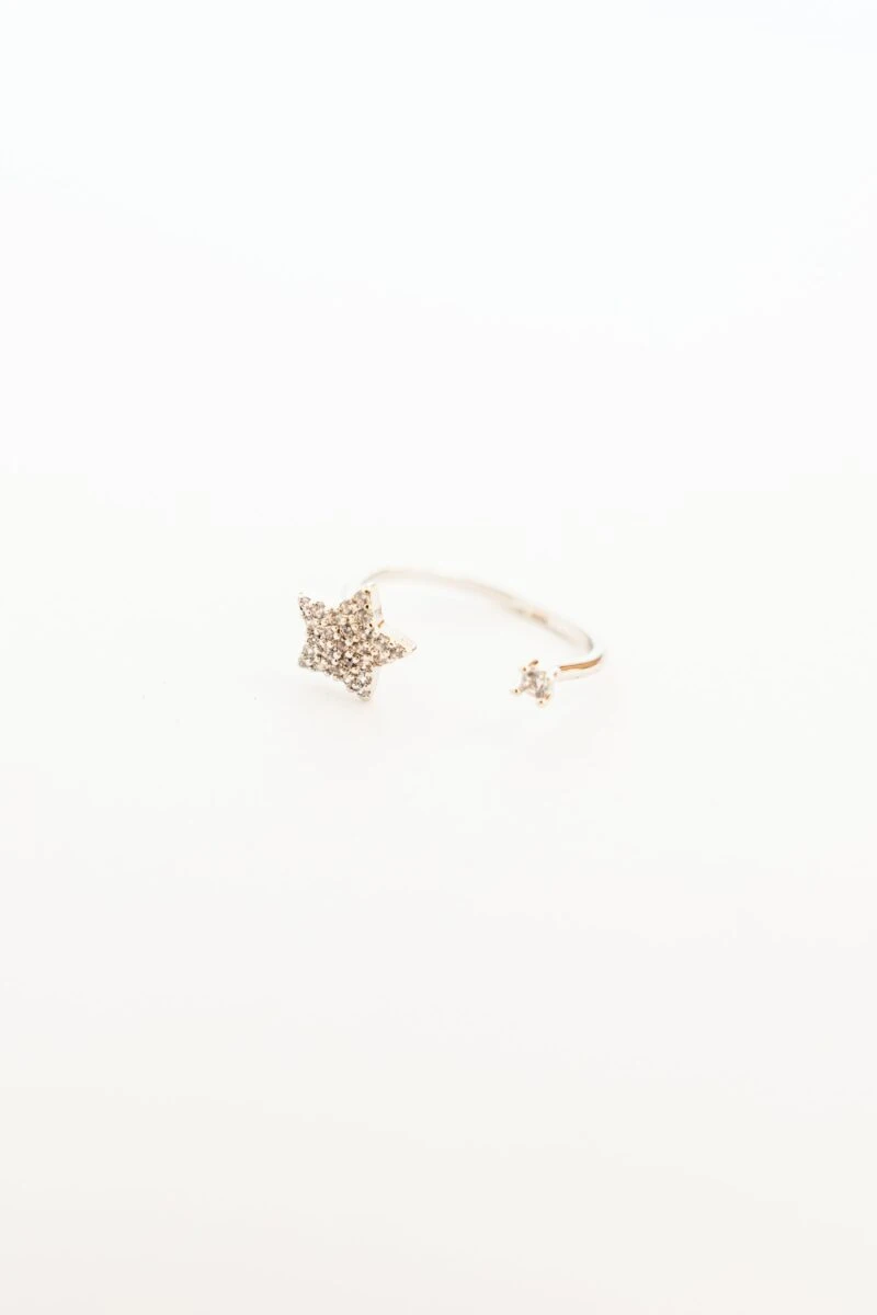 This fun ring is a unique and elegant statement piece crafted from high quality white gold! Its eye-catching star design stands out from the crowd, making it the perfect gift for any special occasion!