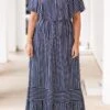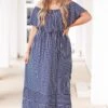 The beauty of this dress is definitely not an illusion! Made of soft, stretchy fabric, this navy-and-ivory stripe maxi dress features flutter sleeves and an off-the-shoulder design that is sure to WOW the crowd! Enjoy comfortable all-day wear and look your best all season long!