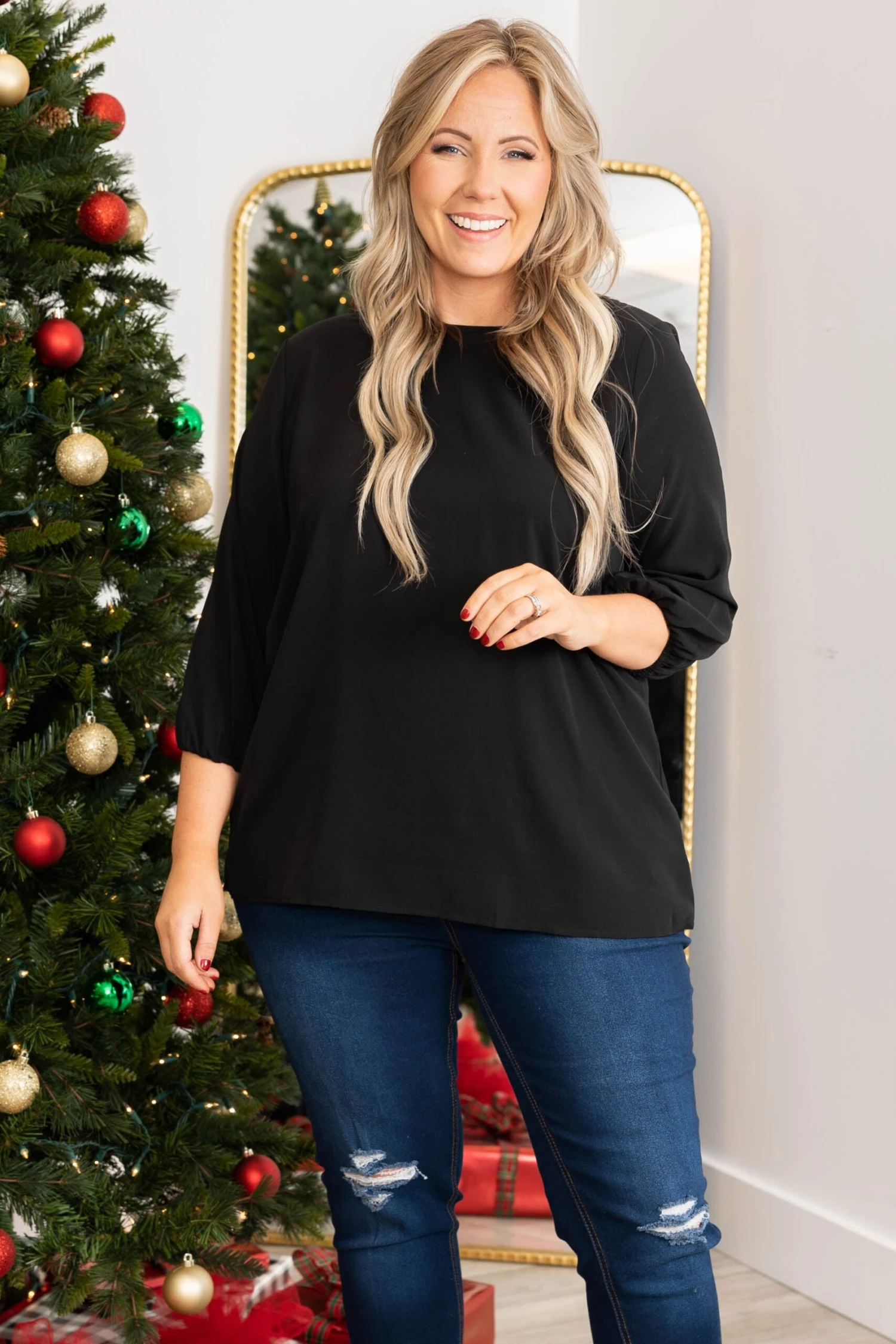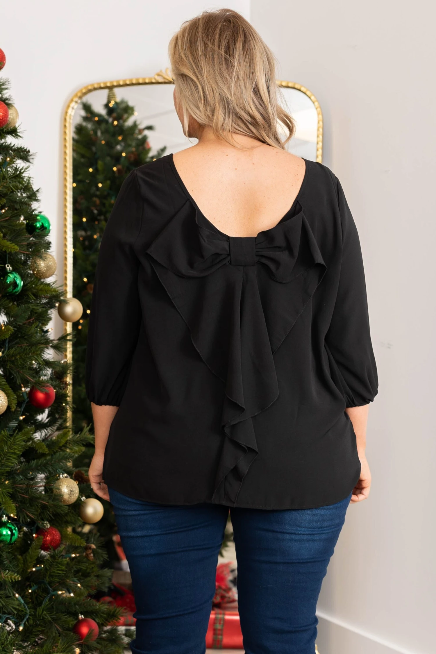 You’ll love this top forever! This top has a classic black color with a flowy, stretchy material that is great for all day wear! The bow design along the back is super trendy! Style this top with skinnies and heels for a classy chic look!