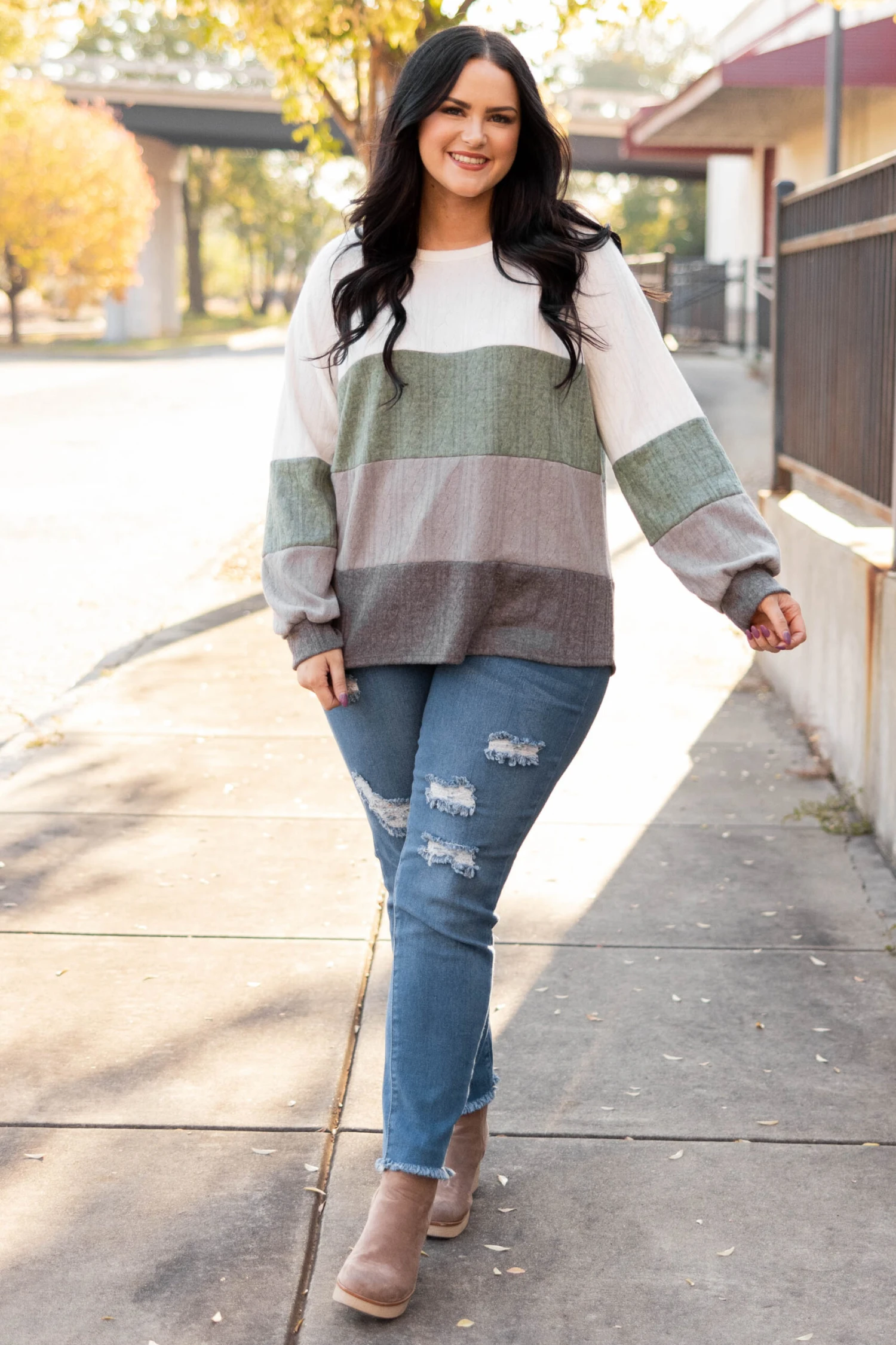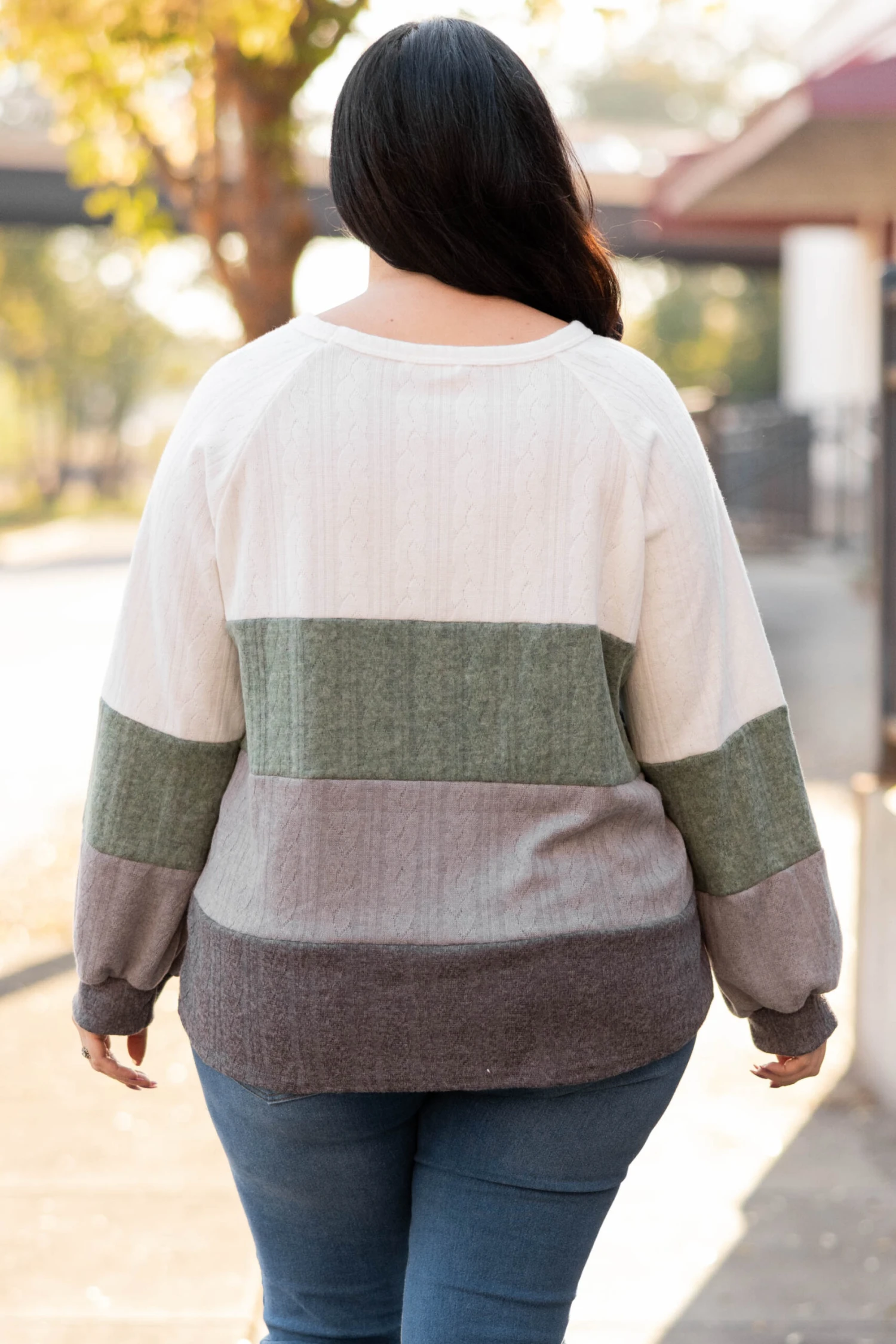 You definitely won’t be like the others in this beautiful top! This top has a soft ivory color mix with a colorblock design that is just in time for the season! This cozy cute top is perfect for a day out on the town! Pair this top with some cute skinnies or leggings for a casual chic look!