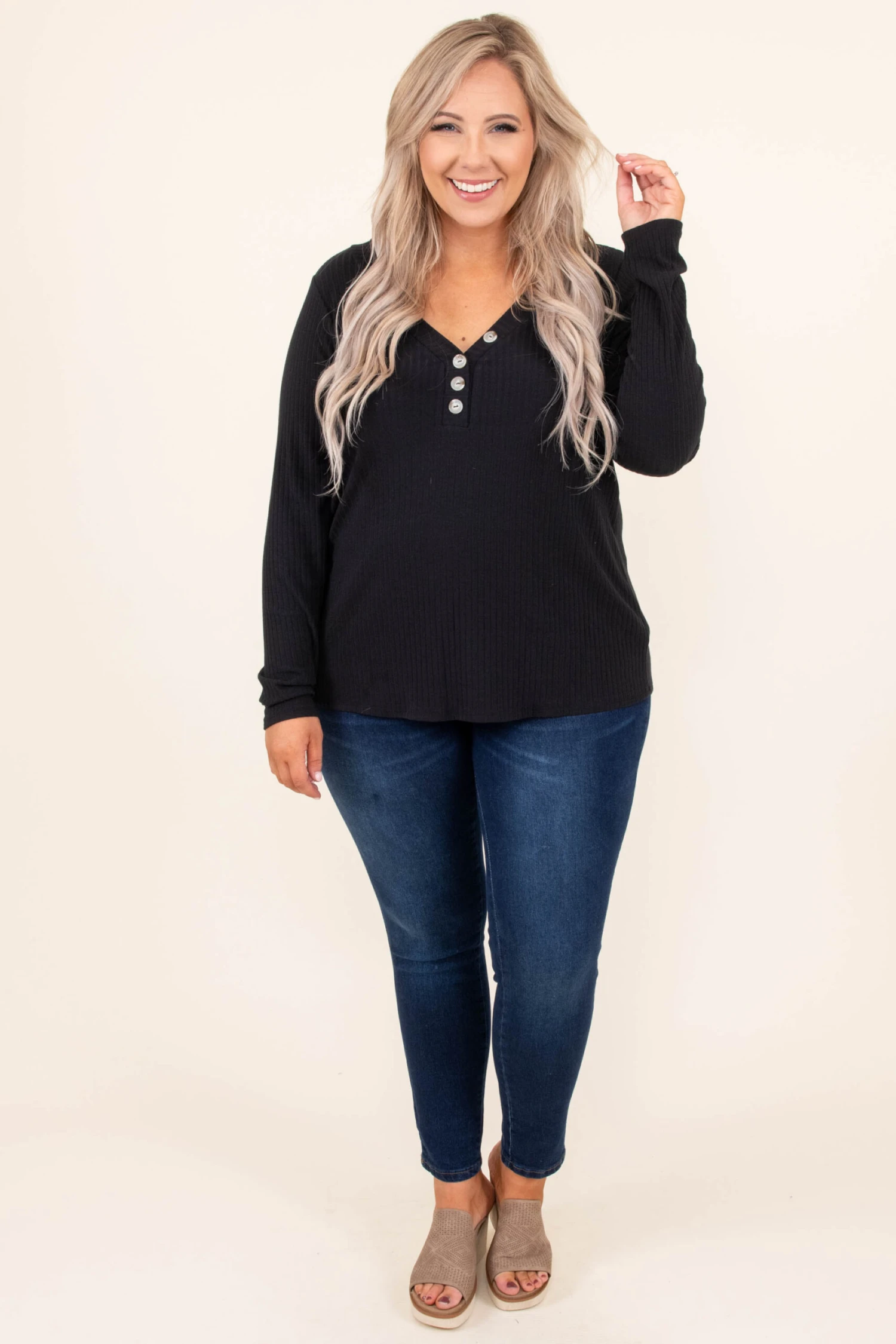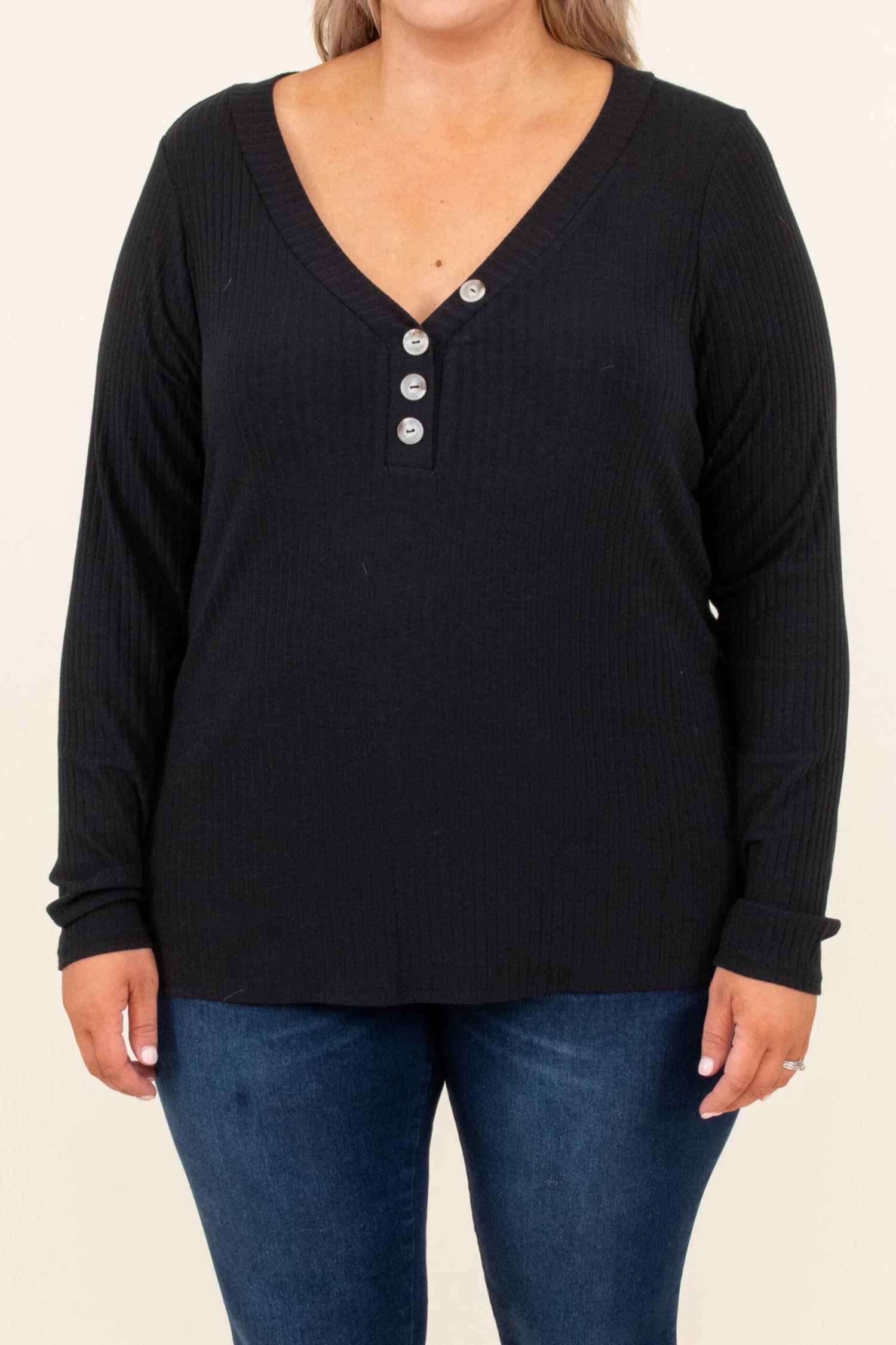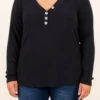 This chic top has a light and figure-flattering fit to keep you cool and comfortable and you can style with your favorite skinnies! The solid black color makes this top easy to dress up or down, and we absolutely adore the button detail! Wear this top with jeans for your next outdoor adventure!