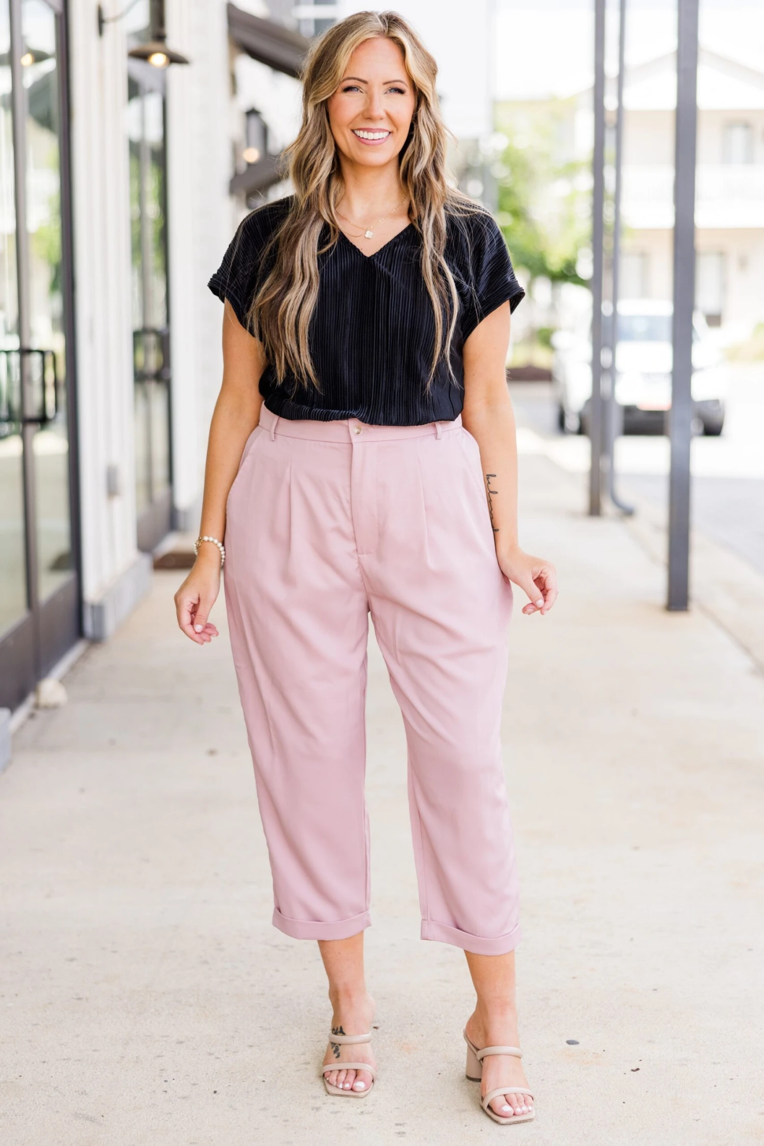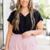 Flaunt your style with the Not Right Now Babe top in classic black! The silky ribbed fabric adds a touch of elegance while the v-neckline and cuffed sleeves elevate your look. Feel confident and chic in this must-have top!