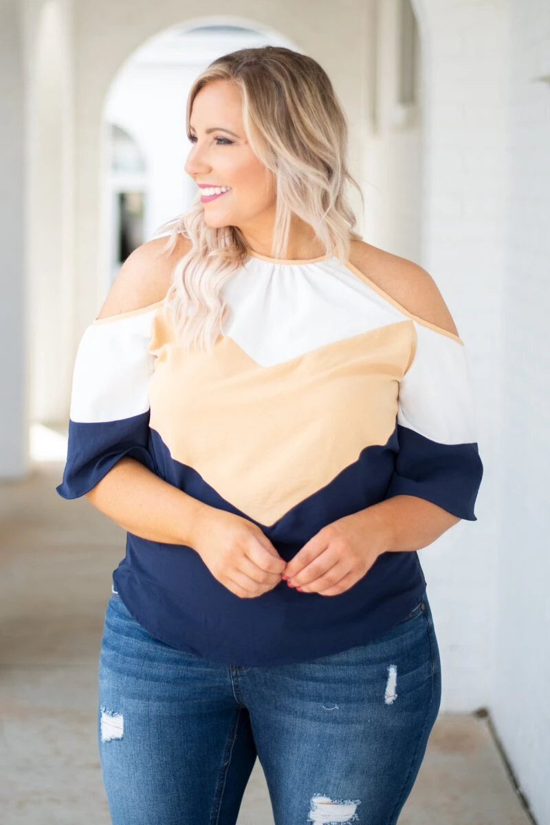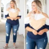This is not your usual top, because it’s better than you could have ever imagined! It’s appropriate for every occasion, whether going to work or dinner with the girls, and is comfortable enough for all-day wear! Not to mention, the mustard color is perfect for Spring! Wear this top with white denim and wedges for your next event!Â