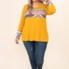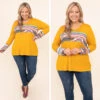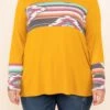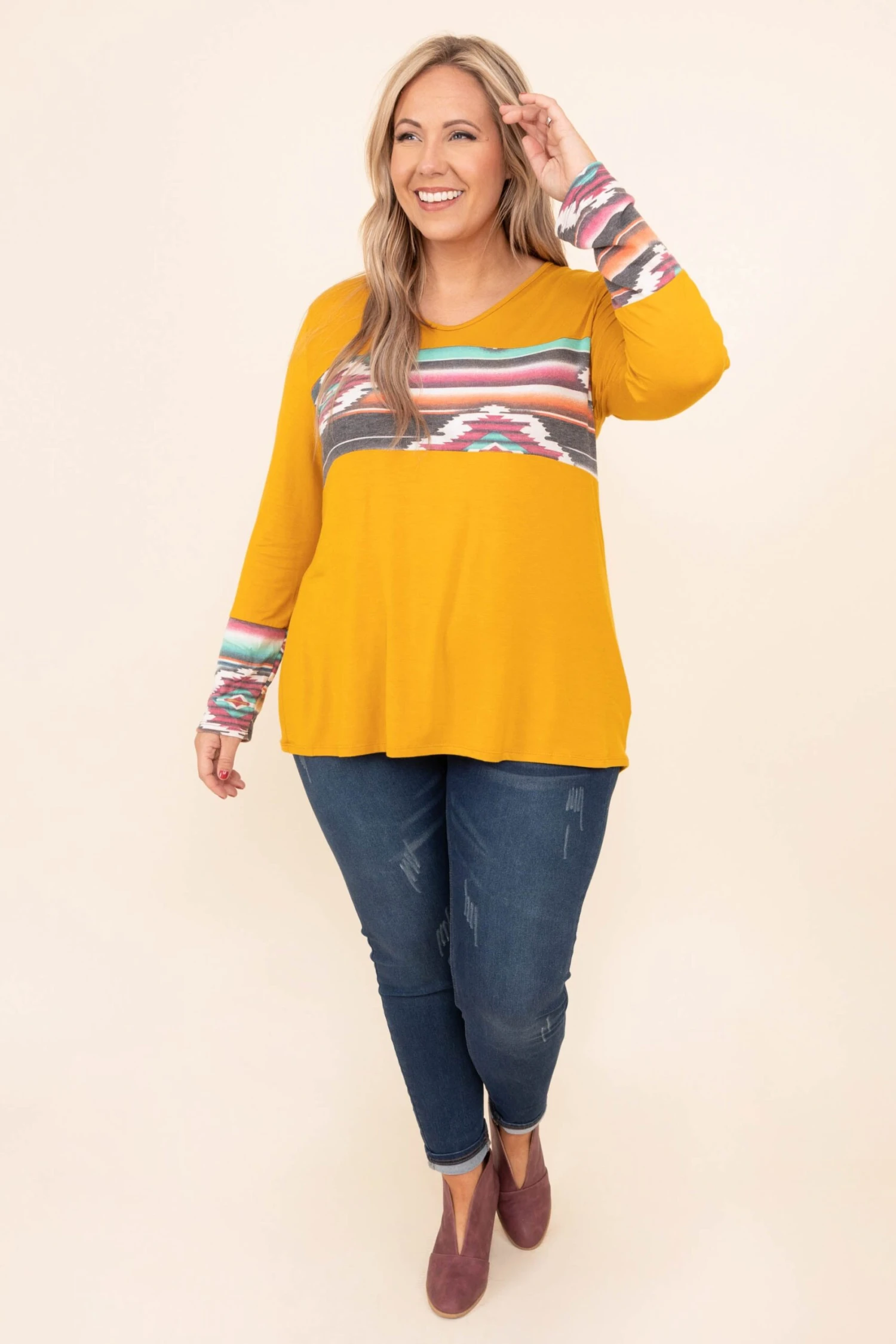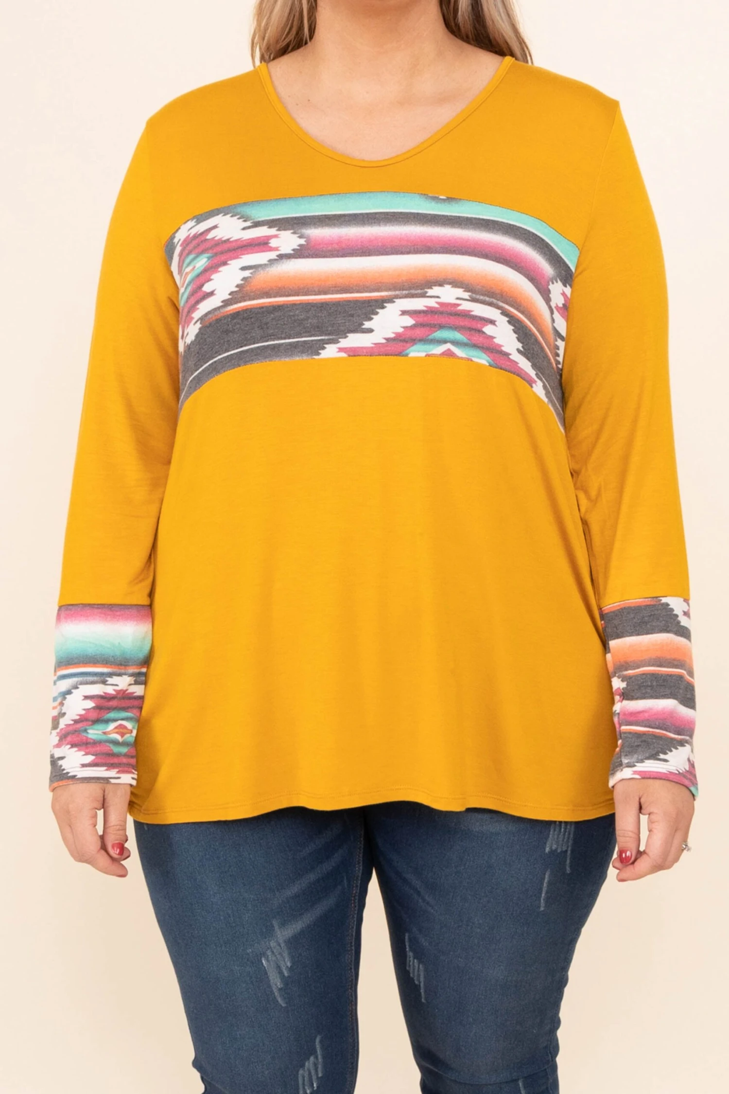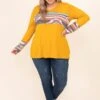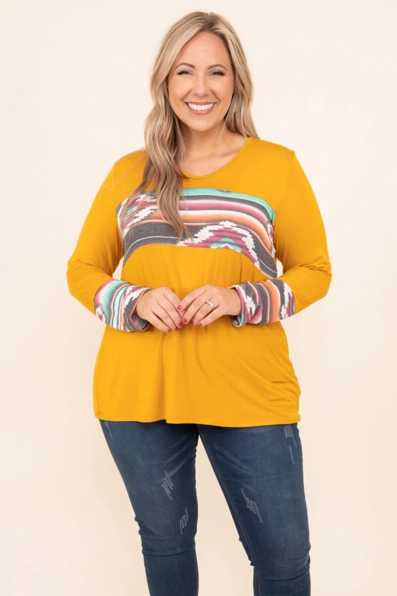 Everyone will take notice of you in this top! It features a beautiful Aztec design and features material that is so soft! It is the perfect top to throw on with your favs! This mustard top is comfortable for all-day wear and offers a figure-flattering fit for all body types! We see this top paired with your favorite skinnies and booties!