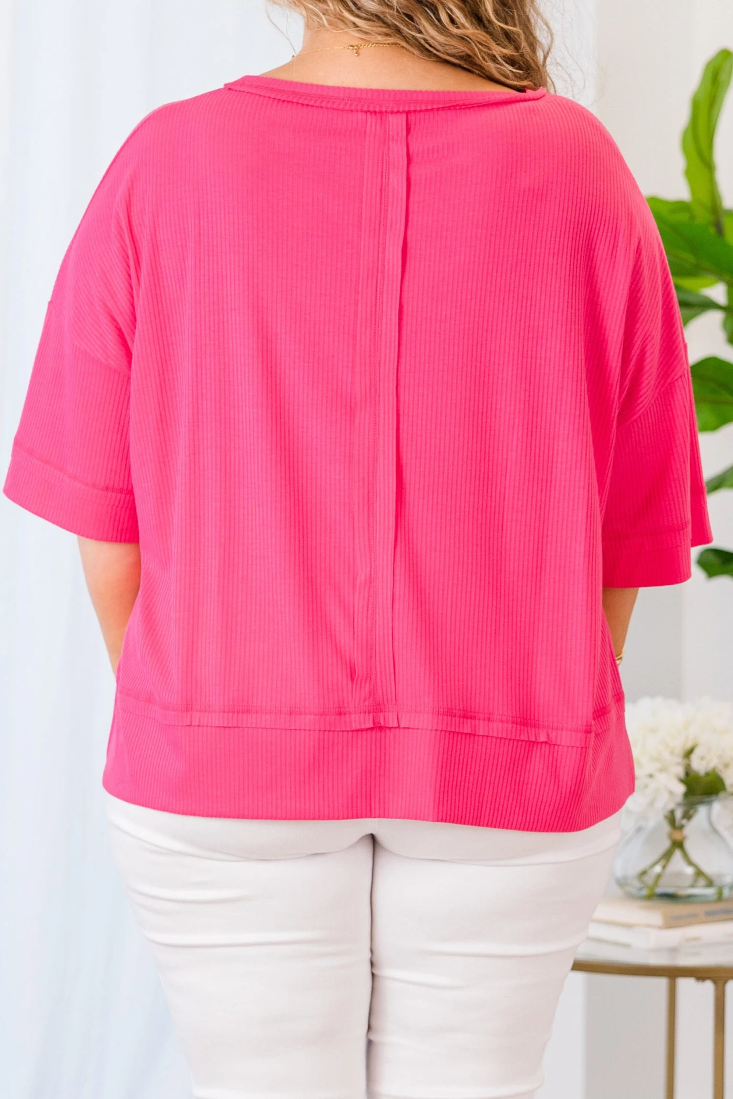 Of course you need this beauty in your wardrobe! This top has a lovely fuchsia color with a stretchy, figure flattering fit that is great for pairing with all of your faves throughout the season! Style this top with some denim shorts and sandals for a casual chic look!