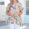 Of course you need this beauty in your wardrobe! This top has a lovely light navy color with a stretchy, figure flattering fit that is great for paring with all of your faves throughout the season! Style this top with some shorts and sandals for a casual chic look!