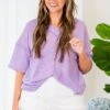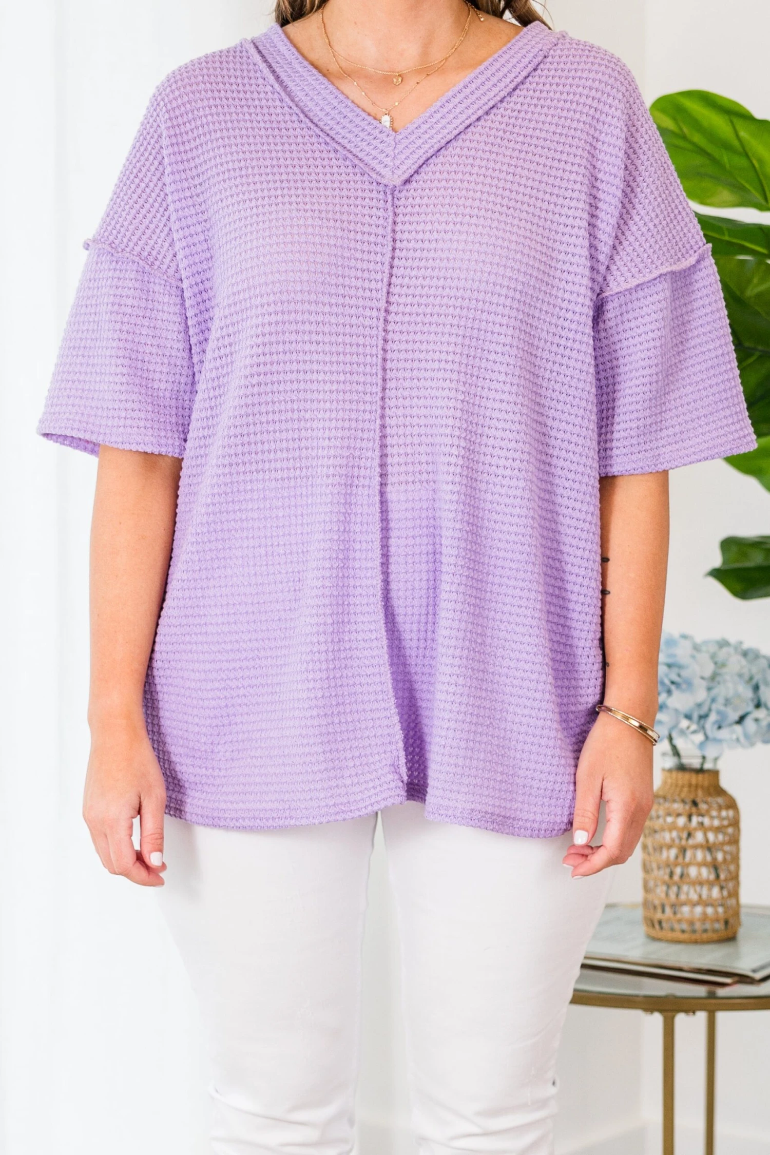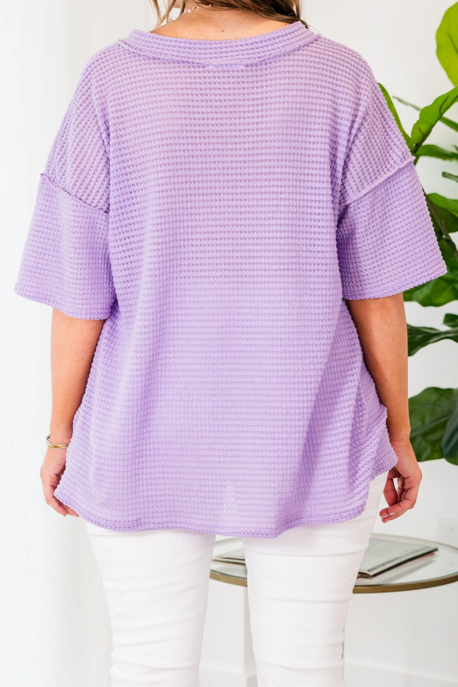 We are so in love with this top! It features a lovely textured design, adding a touch of sophistication to your wardrobe! The lightweight material makes it perfect for warmer days, while the charming lilac color pairs beautifully with white denim and cute accessories! Elevate your off-duty style with this stylish and versatile top!