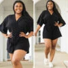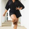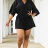 The clock is running out for you to grab this beauty! This romper has a neutral black color that is just in time for the season! The soft material and crisscross neckline is super sweet! We see this romper paired with some cute accessories and sandals or sneakers for a look they’ll never forget!