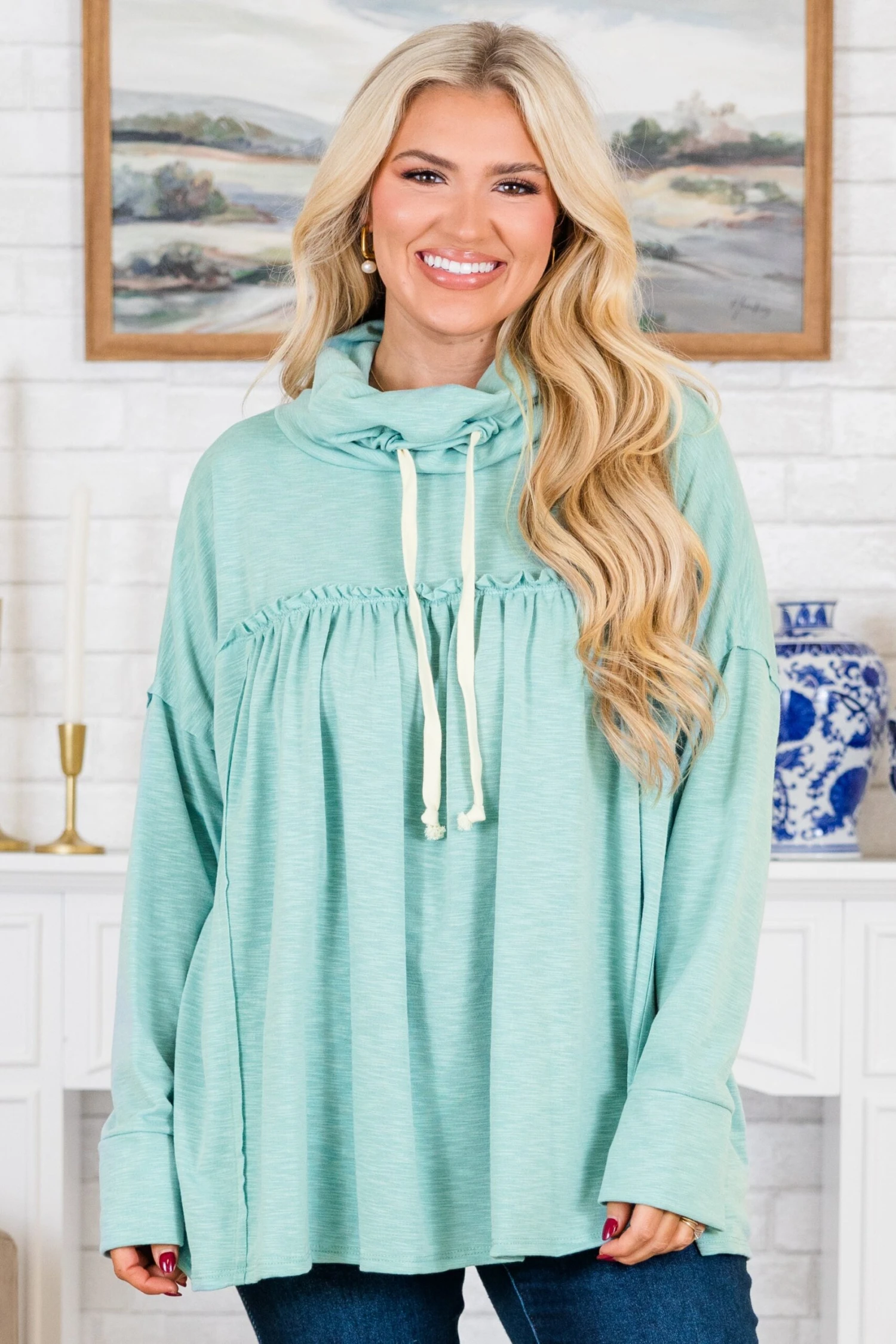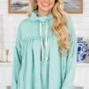 Elevate your style with this hoodie in mint! This trendy piece features a cowl neck design and a flattering baby doll top! Crafted with attention to detail, it offers a comfortable fit and effortless style! Make a statement with this must-have addition to your wardrobe!