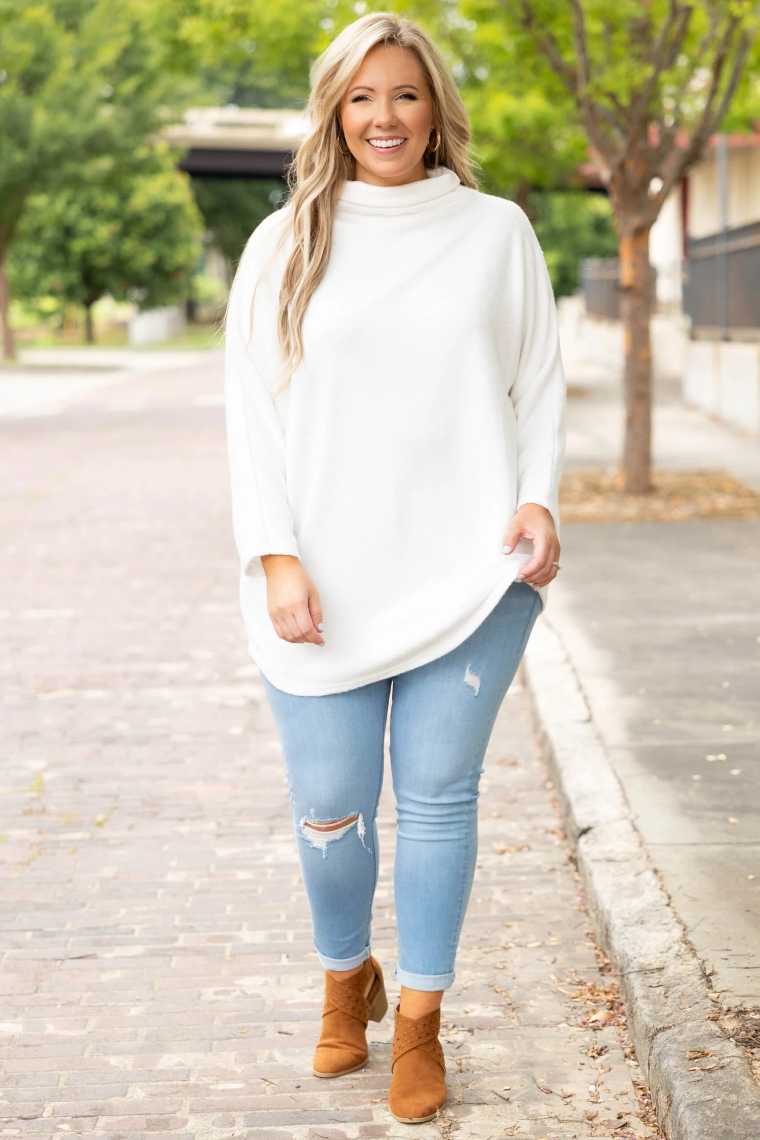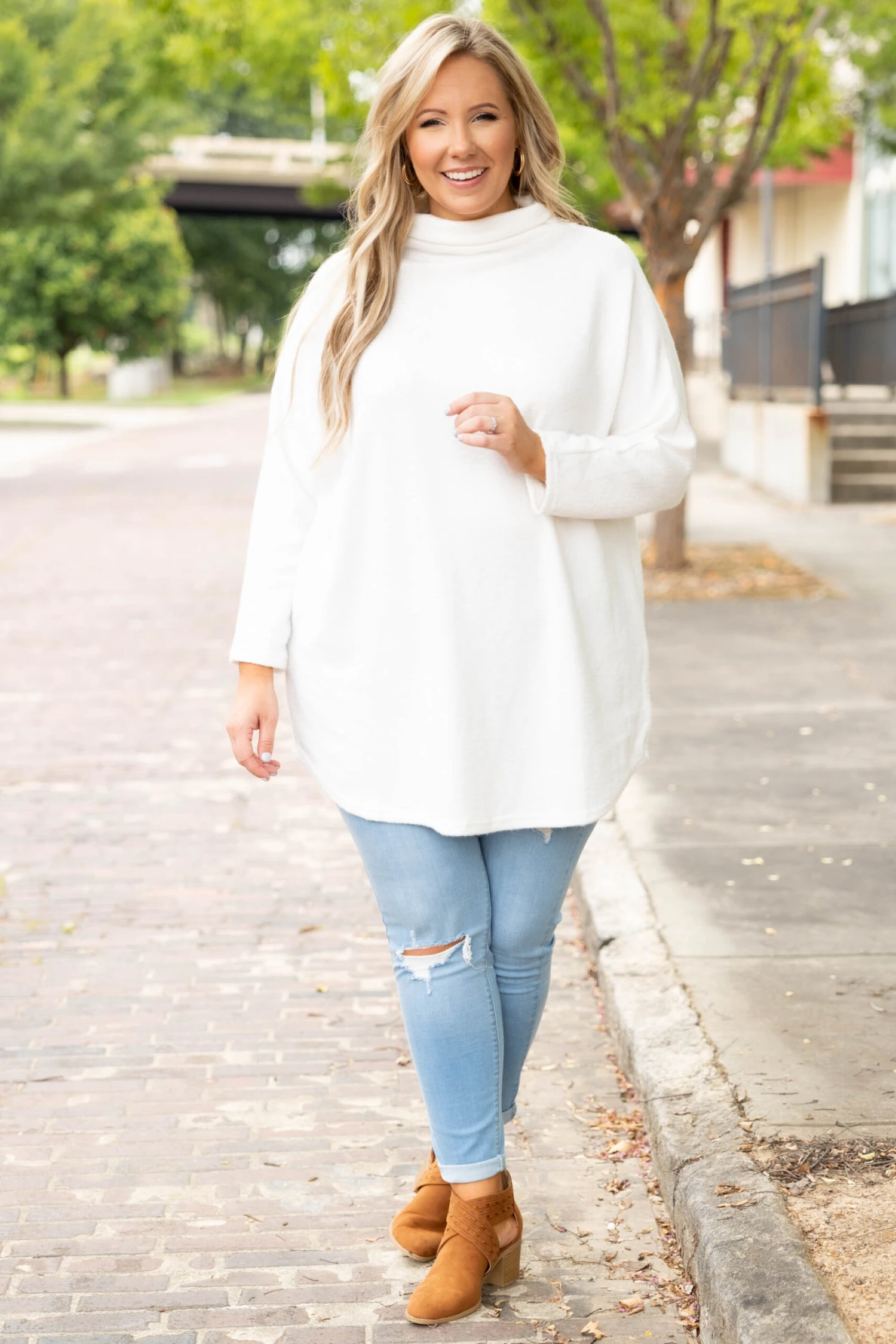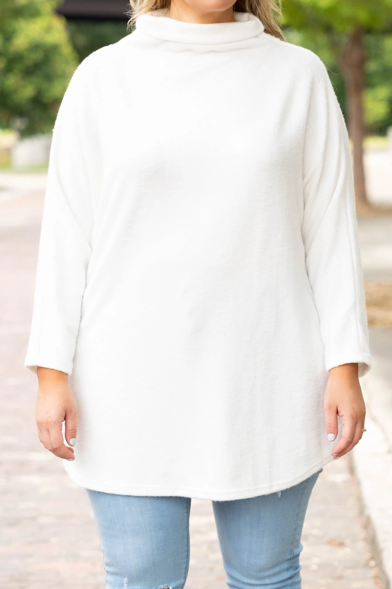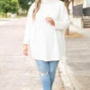 Consider it a happy day when you wear this top! The design features a beautiful neutral white color! This top is so versatile it is a perfect workwear piece that can easily transition to date a night fit! This top is comfortable for all-day wear and sure to flatter every figure! Pair this with a chic pair of booties and skinnies for an effortlessly fab look!