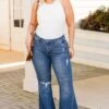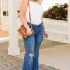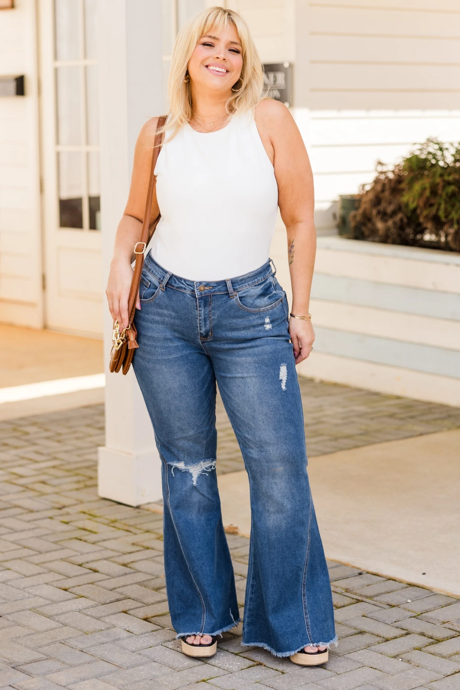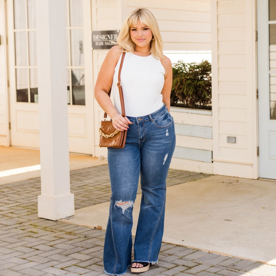 Take these FAB jeans on your next adventure! Featuring a flattering fit, these jeans boast a flare design, frayed hemline, and distressed detailing for a touch of edge! The trendy dark wash is perfect for pairing with all of your favorite top and accessories! Great for any occasion, these jeans will elevate your style to new levels!