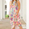 Make a memorable entrance with this mesmerizing dress! Crafted with a bright floral pattern and beautiful multi-color, this dress is the perfect choice for a beach-side or casual day out! The lightweight material is a breeze to wear, and you’ll be sure to stand out from the crowd!
