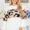 Unleash your wild side with this sweater in ivory! Featuring a playful leopard print stripe and a cozy soft knit feel, this sweater is perfect for any occasion! The crew neckline and full-length sleeves add just the right amount of warmth, while the relaxed fit and stretch make for a comfortable and stylish look!