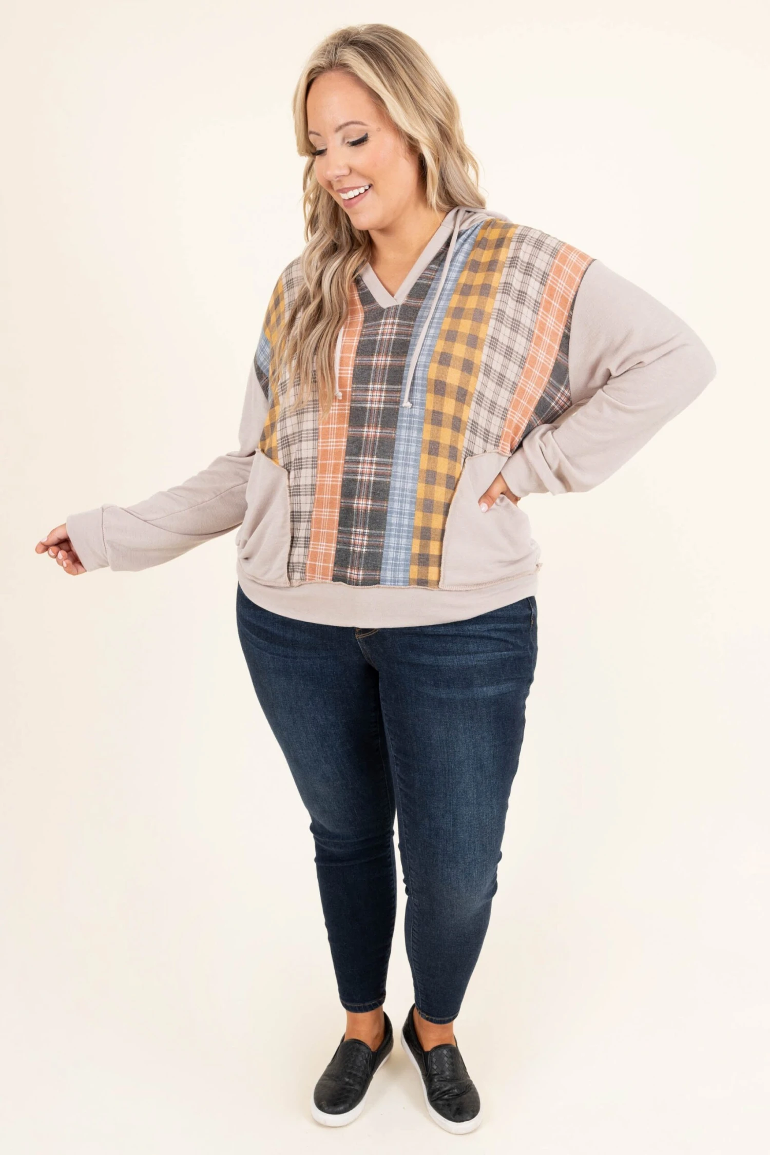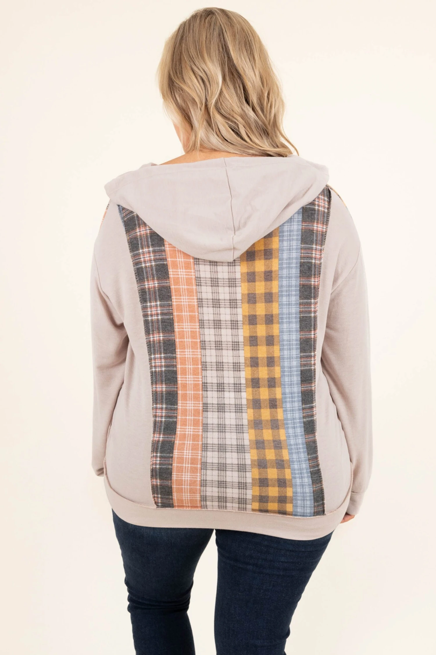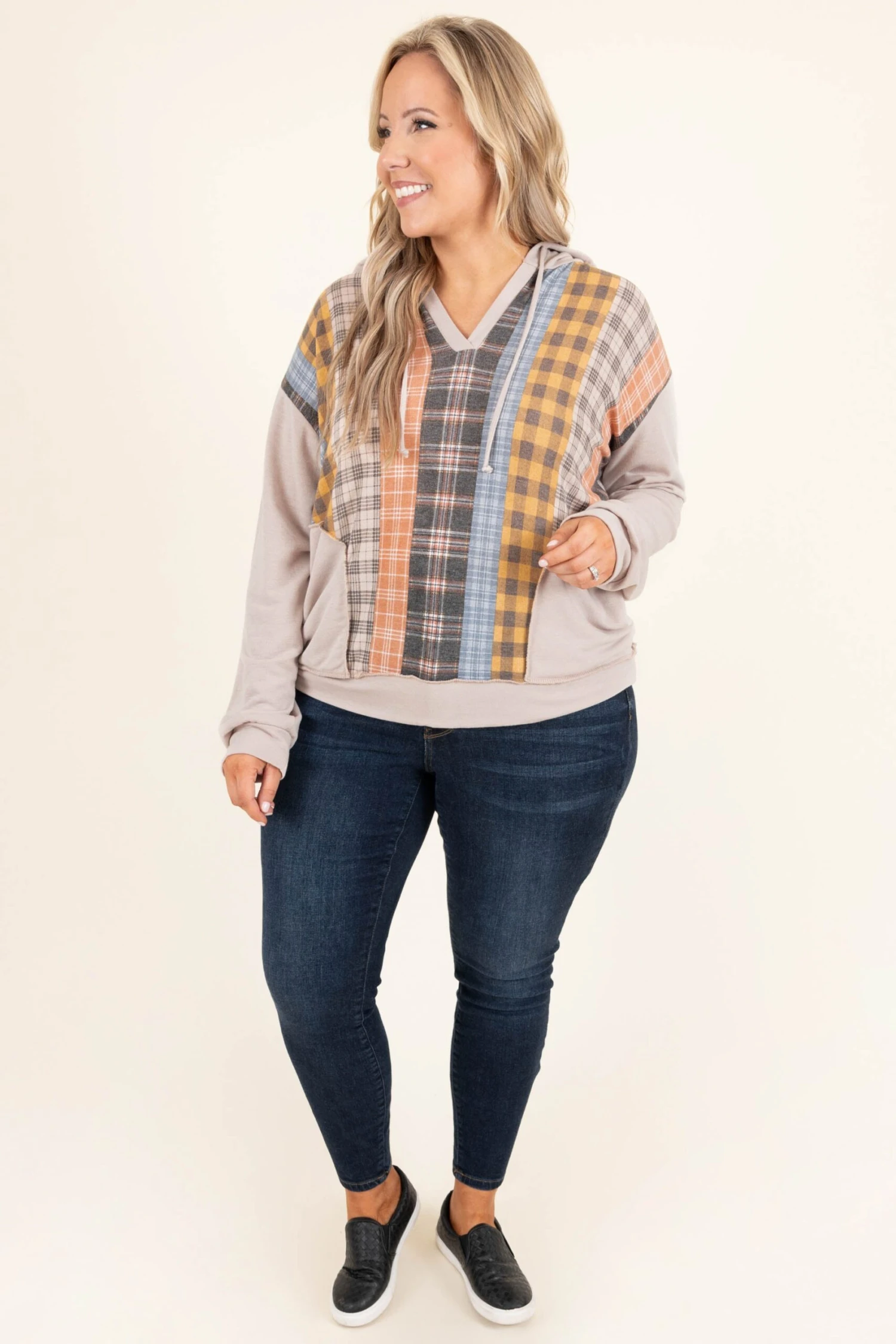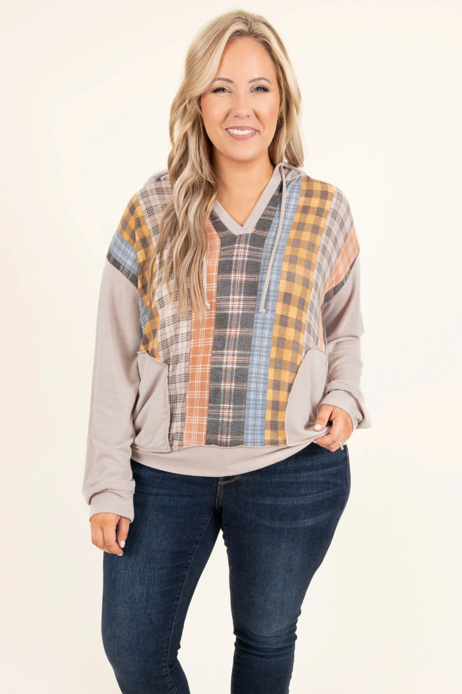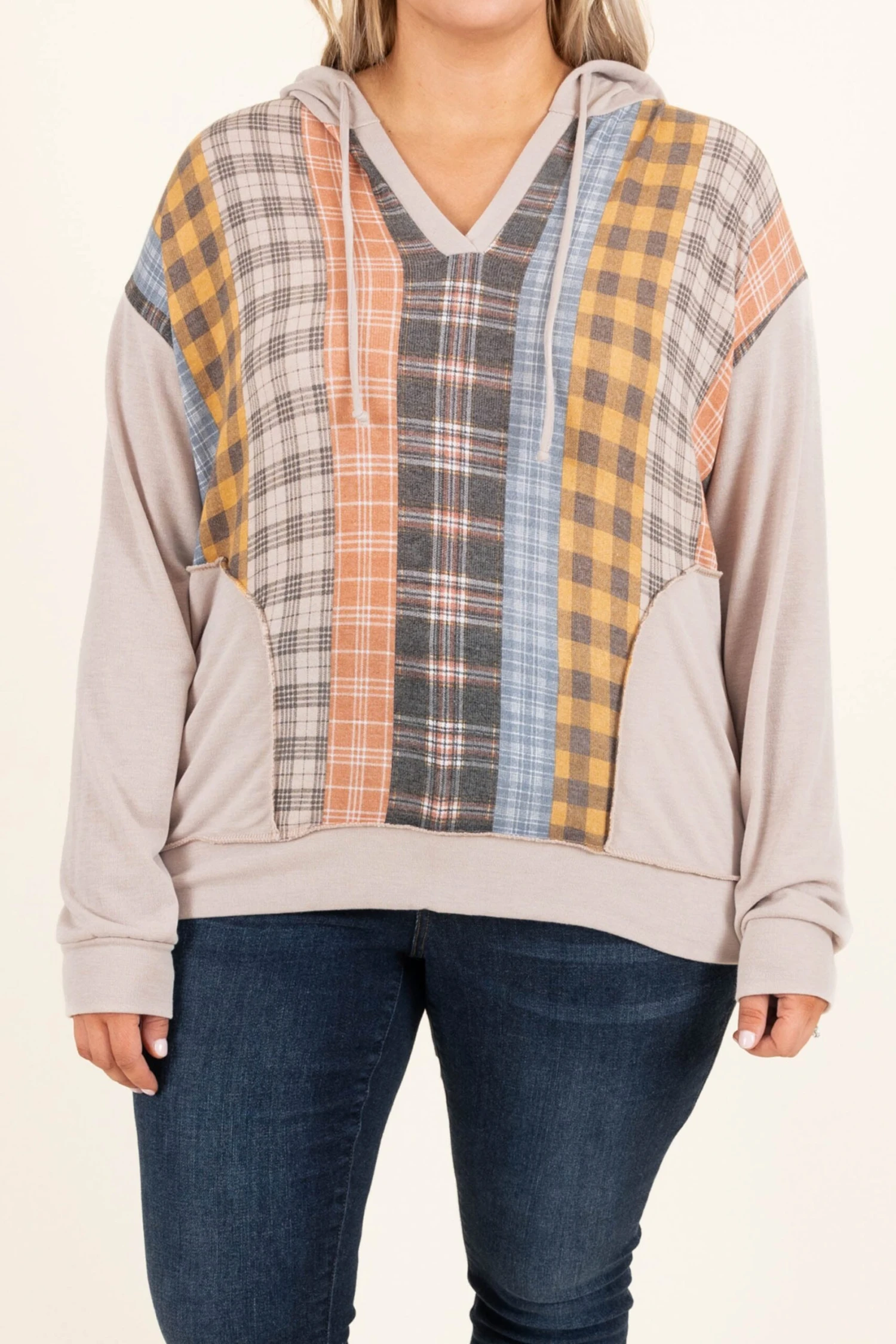 Take one more look, now add this adorable hoodie to your wardrobe! This hoodie is so unique! From the plaid design to the soft, stretchy material, it’s absolutely perfect! Style this hoodie with some denim and sneakers for a casual, chic look!Â