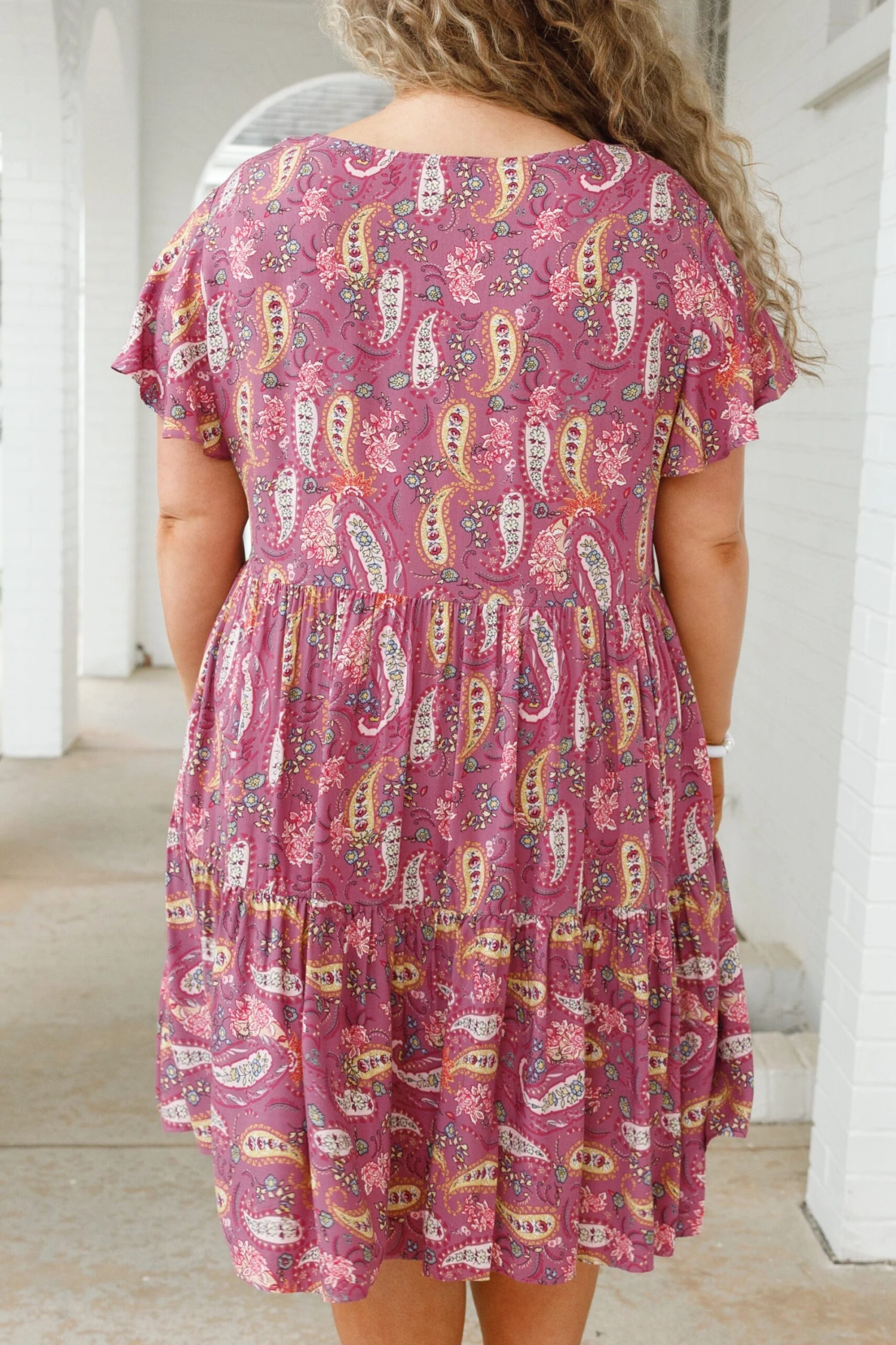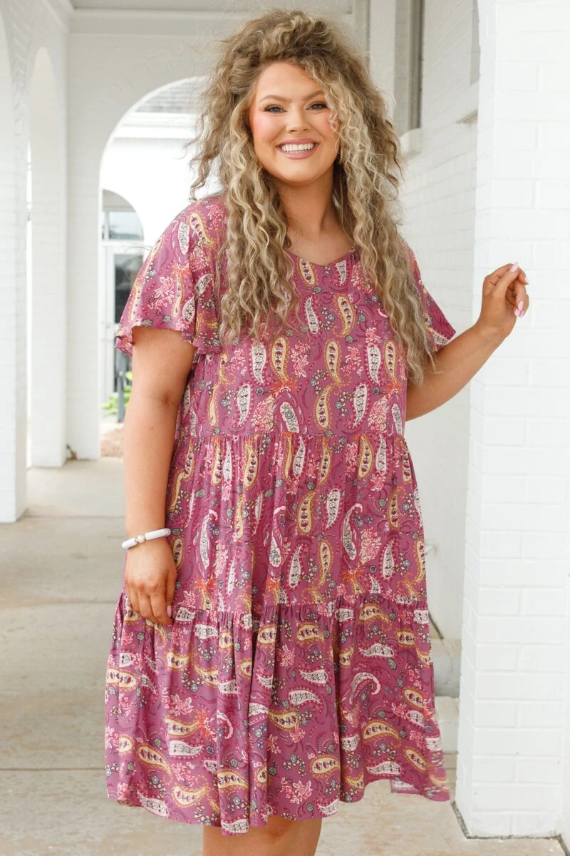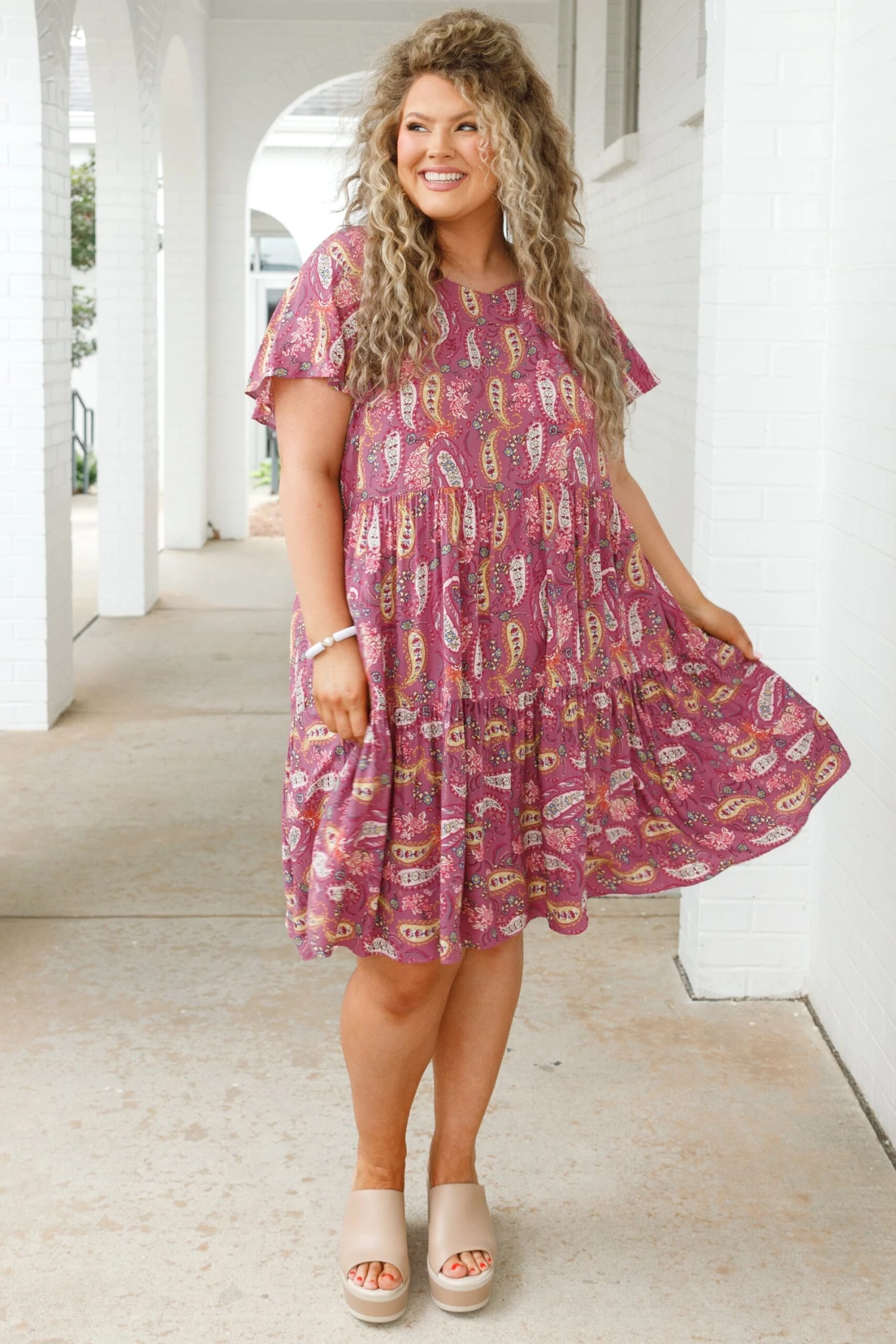 We simply adore this beautiful dress! Its crafted from a lightweight fabric decorated with a beautiful paisley pattern! The pretty plum color and figure flattering fit make this dress perfect for any occasion! Step out with confidence knowing you look your best!