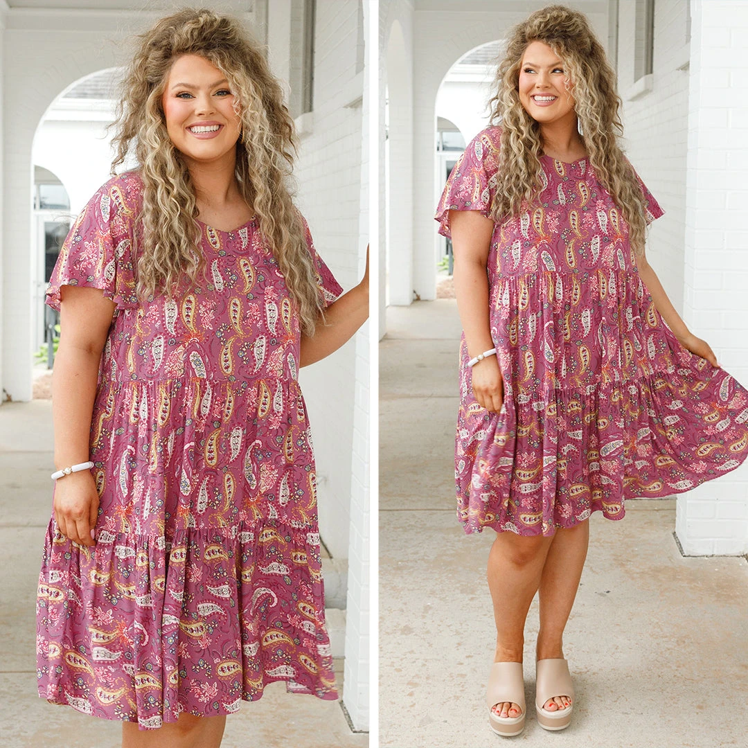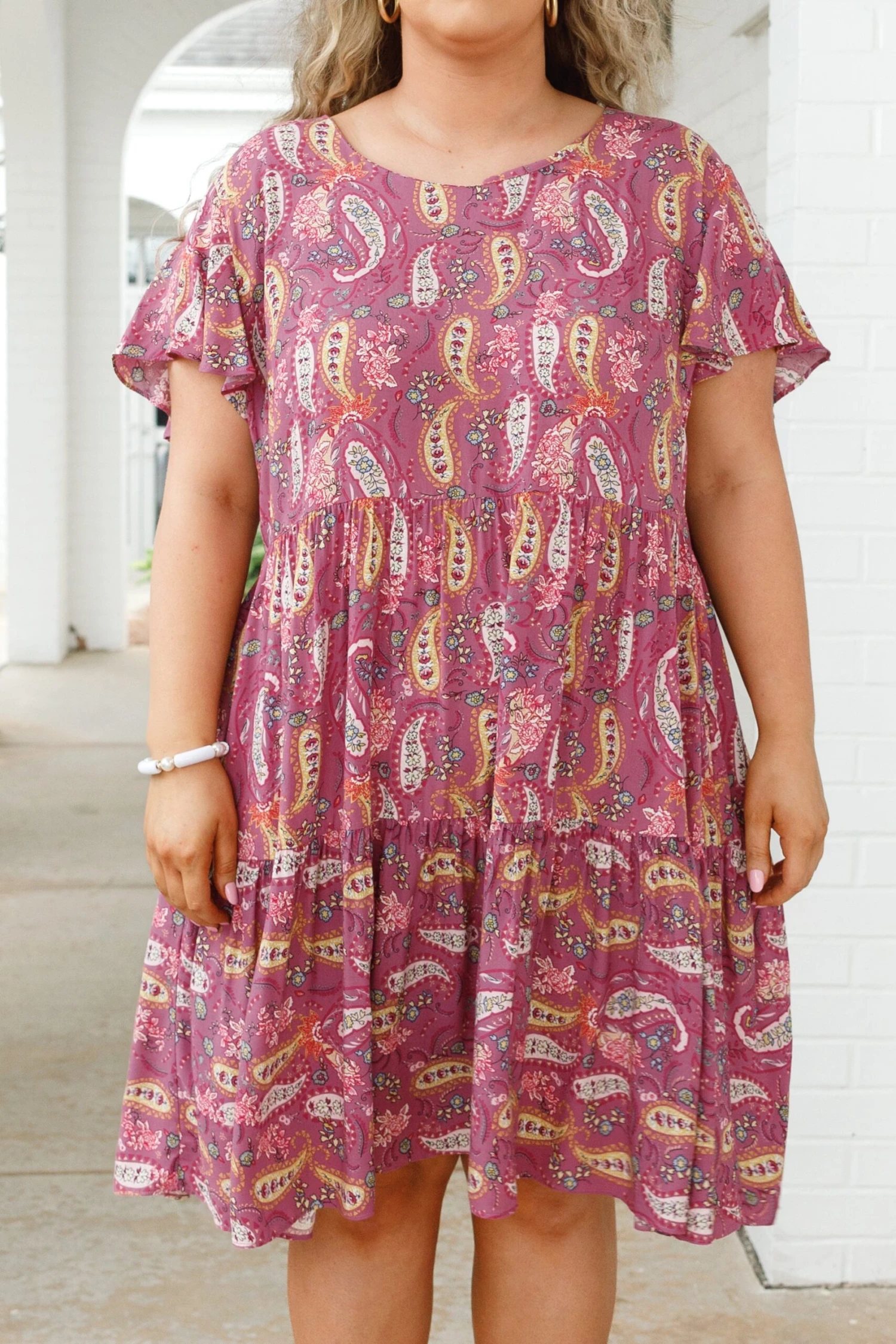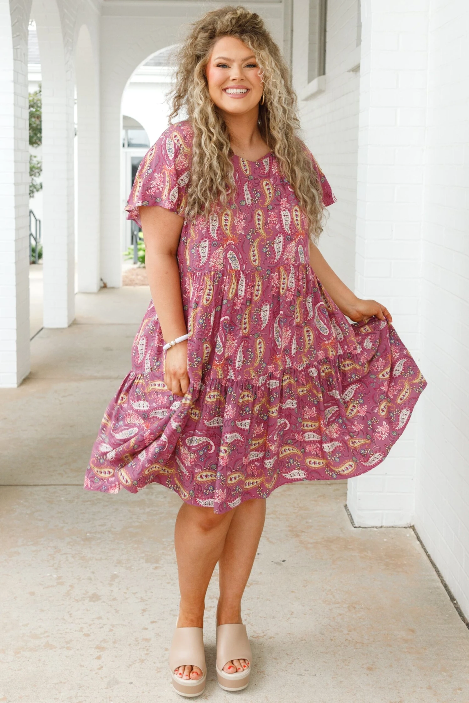 We simply adore this beautiful dress! Its crafted from a lightweight fabric decorated with a beautiful paisley pattern! The pretty plum color and figure flattering fit make this dress perfect for any occasion! Step out with confidence knowing you look your best!