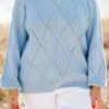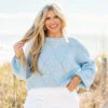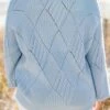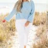We are so in love with this sweater! It offers a cozy and stylish addition to your wardrobe! With its textured design, this sweater exudes comfort while the pretty blue color adds a touch of femininity! Pair it with white denim and your favorite heels or sandals for a chic look!