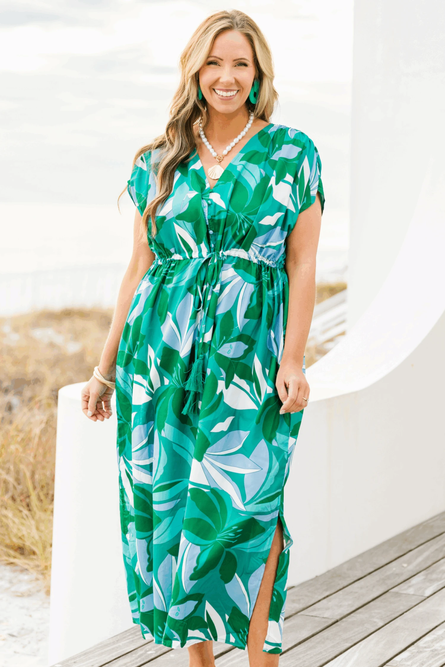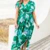 Unleash your inner flower child with this dress in vibrant green! The beautiful floral print will make you stand out, while the flattering v-neck and adjustable drawstring under the bust ensure a perfect fit! Get ready to bloom in style!