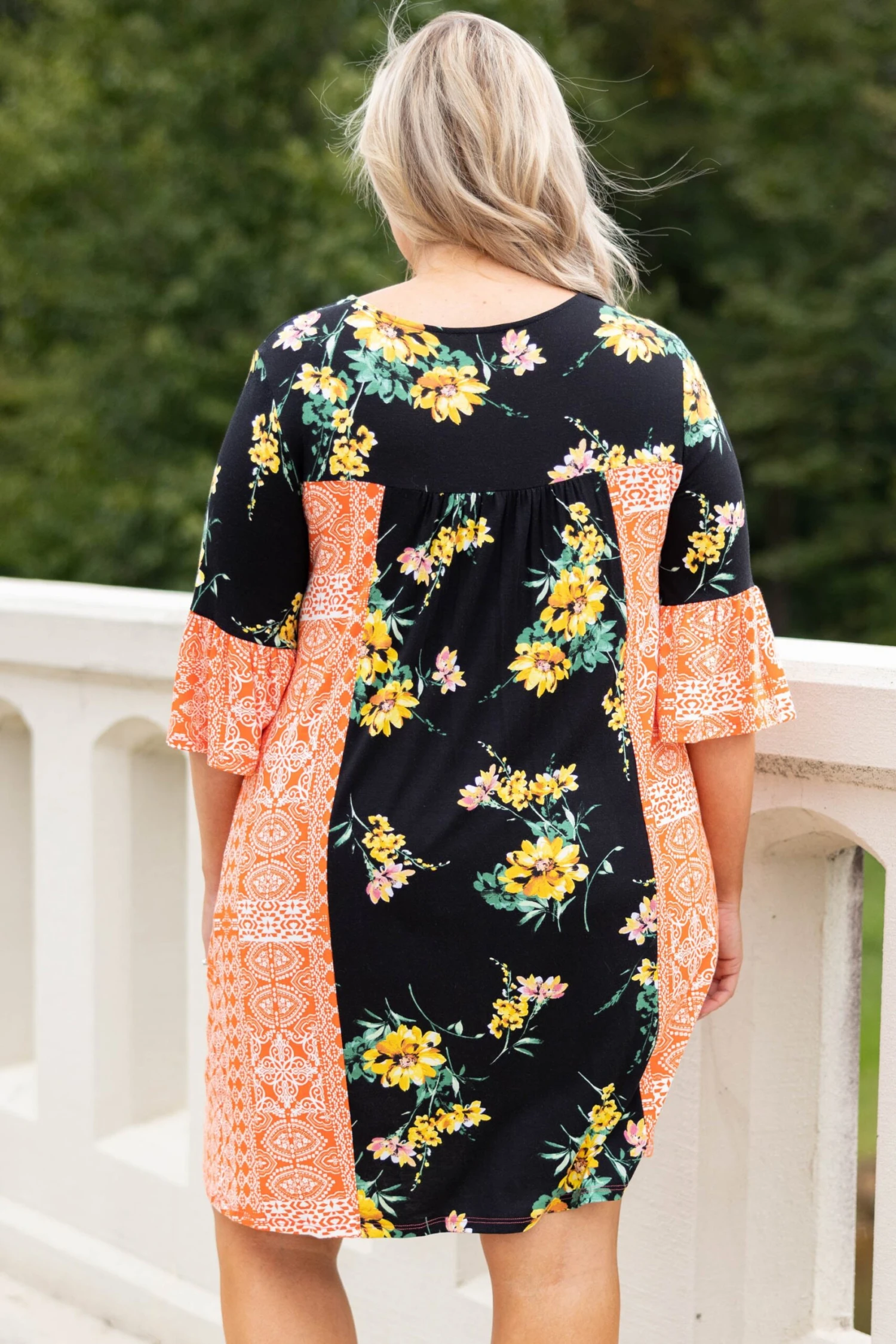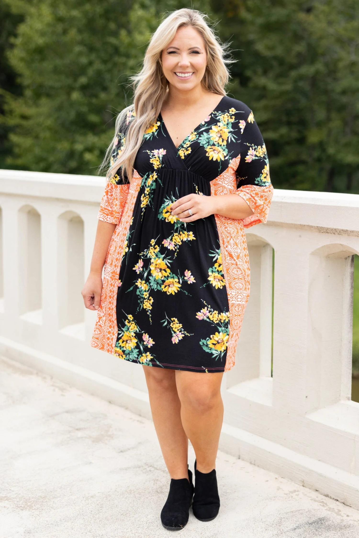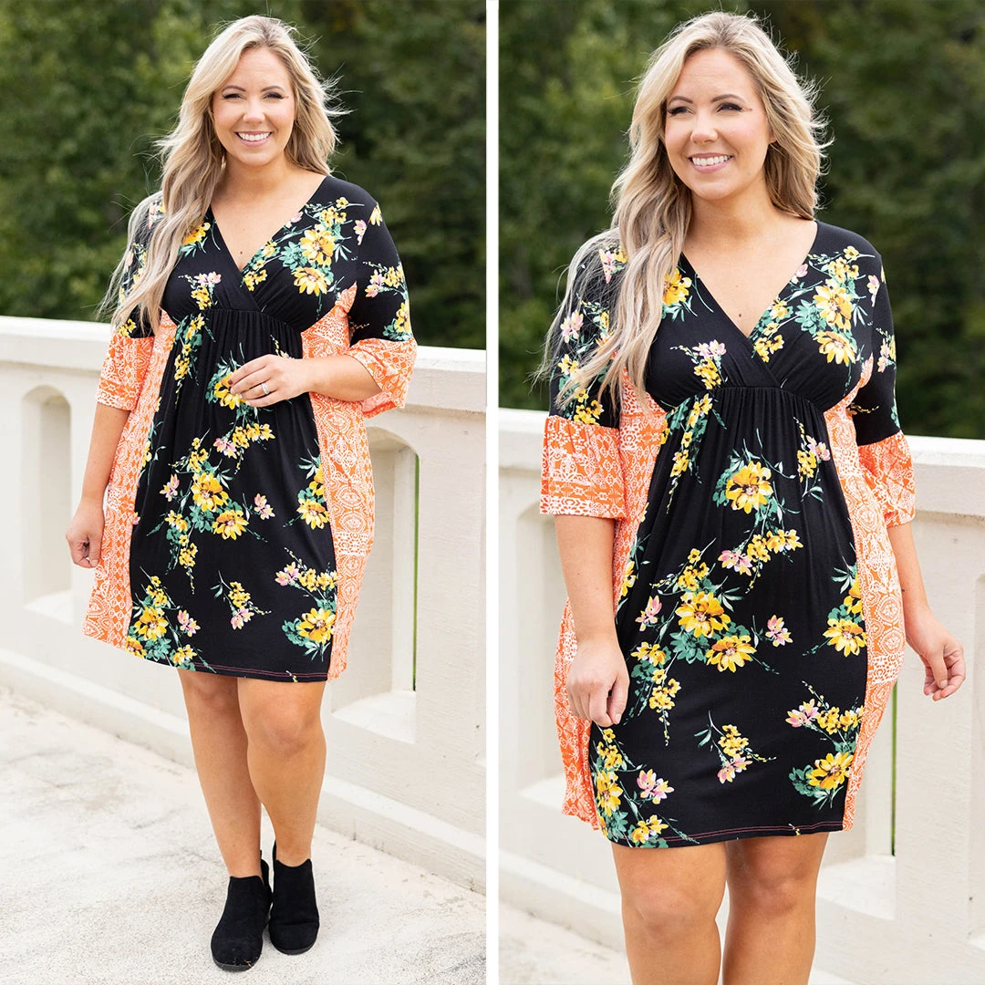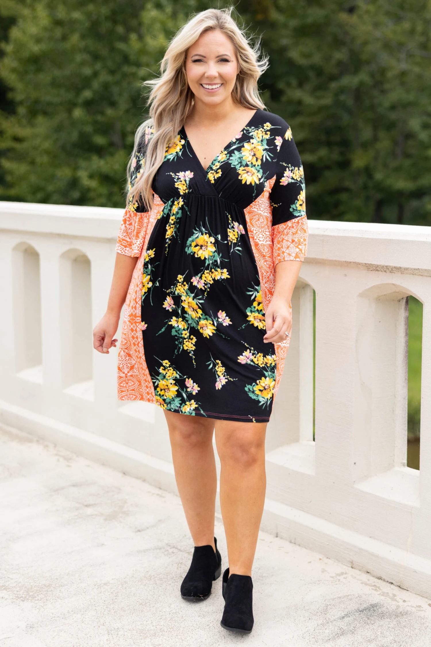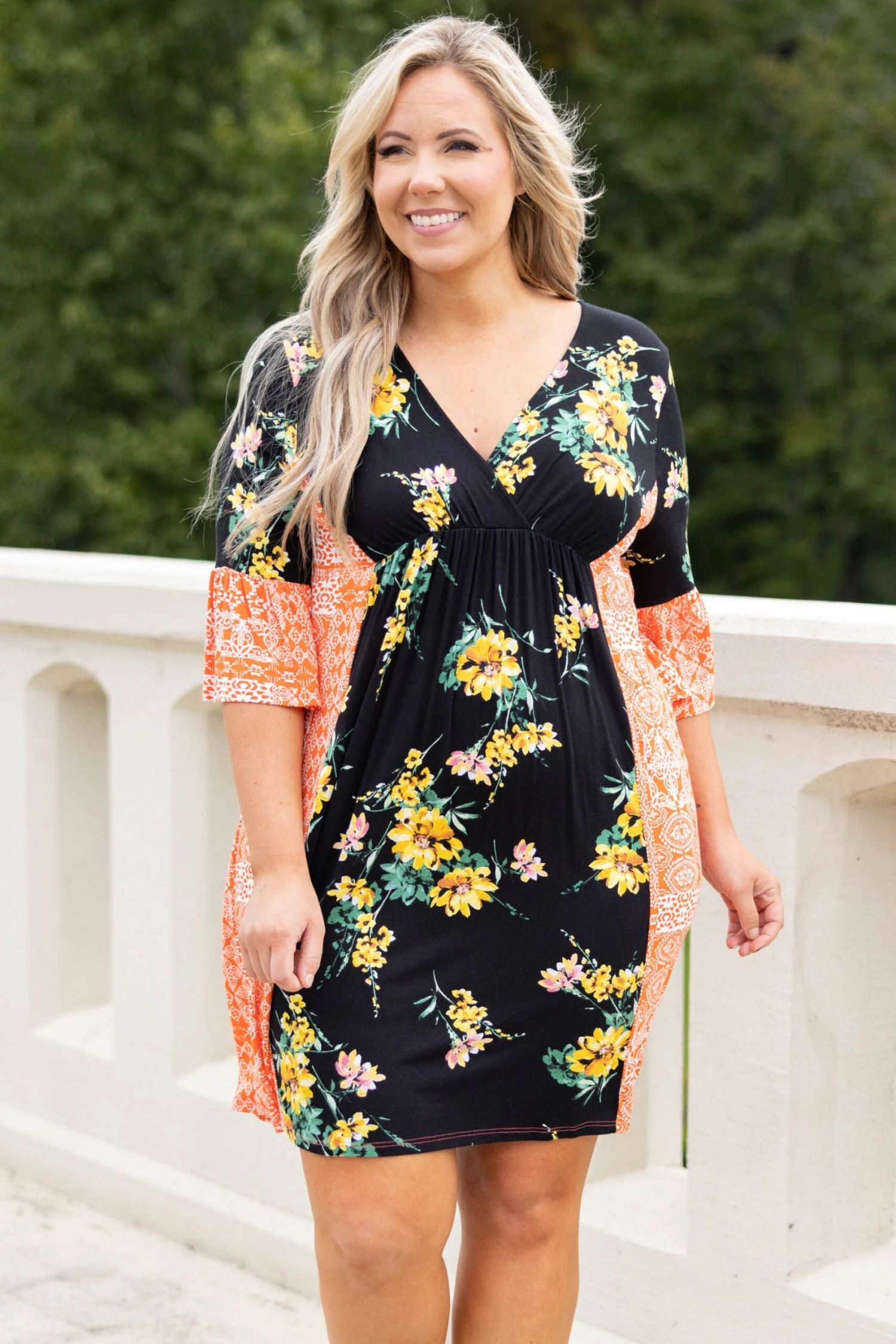 This will be your new favorite dress! This dress is so unique, and we simply love the bold colors and floral pattern! The colorblock style and figure flattering fit is so sweet and perfect for the season! Pair this dress with some booties or heels for a flirty, chic look!Â