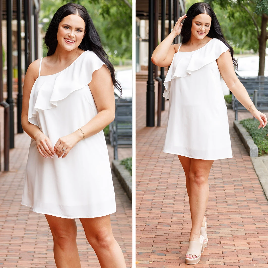 Stay timelessly classic in this gorgeous dress! Crafted from a lightweight fabric in a timeless white hue, this one shoulder design features a flowy fit, perfect for any event! Effortless and elegant, this dress will keep you looking your best for years to come!