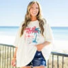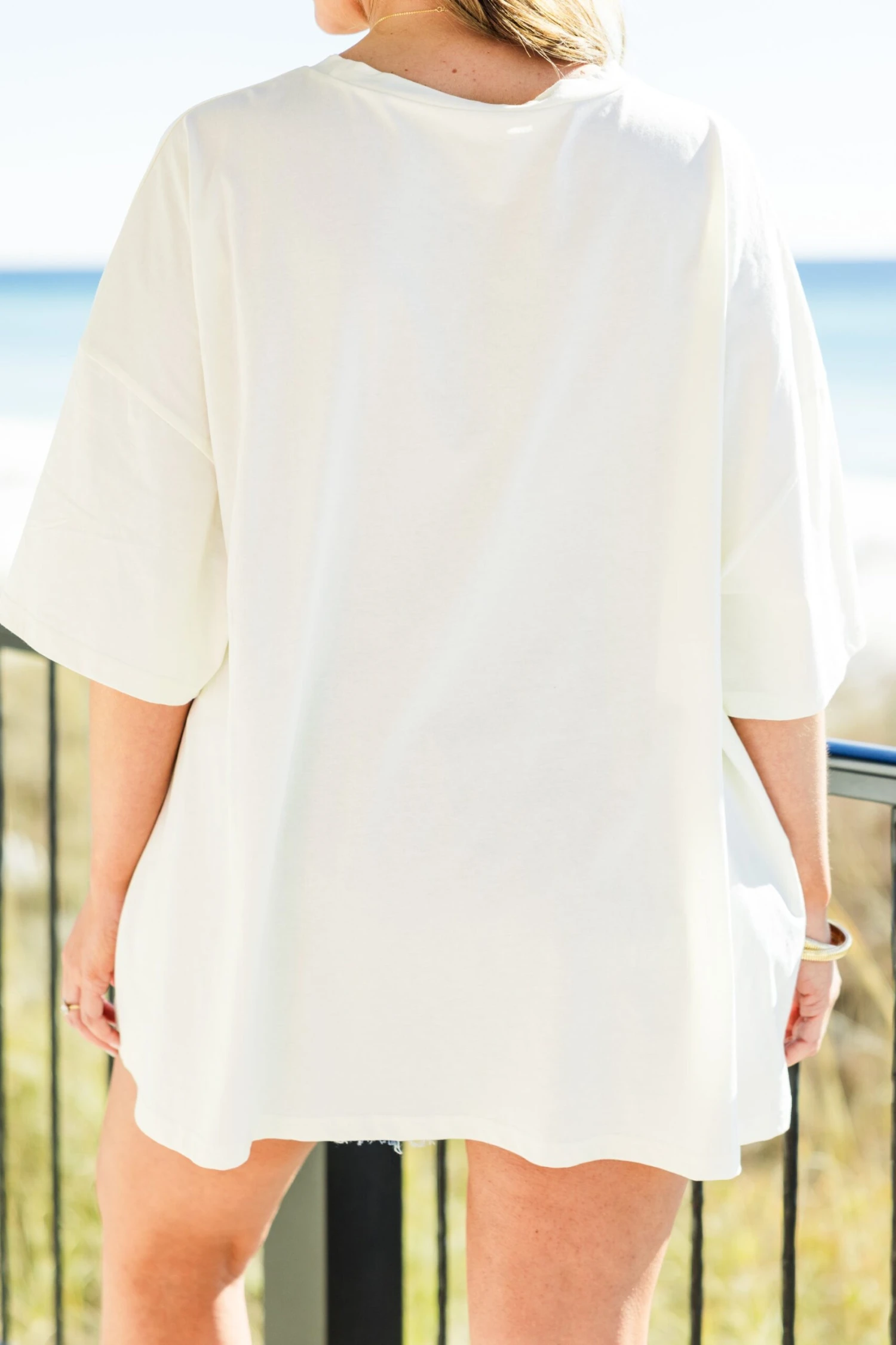 Unleash your relaxed, carefree side with this boyfriend tee! This oversized tee adds an effortlessly cool touch to any outfit, while the playful tropical graphic screams vacation vibes! Perfect for lounging or exploring, this tee will be your go-to companion for any out of office adventure!