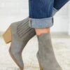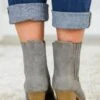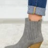 Experience style and comfort like never before with these booties in grey! These chic and versatile chelsea ankle booties feature a trendy grey color, and a sturdy yet stylish brown wedge heel! Perfect for any outfit, these booties will elevate your fashion game to the next level!