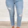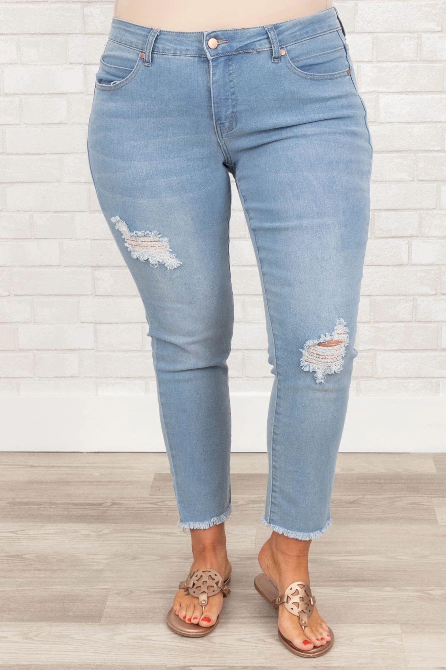 Own your look with these jeans! The light wash color is so trendy for warmer weather and the light distressing and raw hems are so chic! Style them with your best top and wedges for a look that will make them do a double take!
