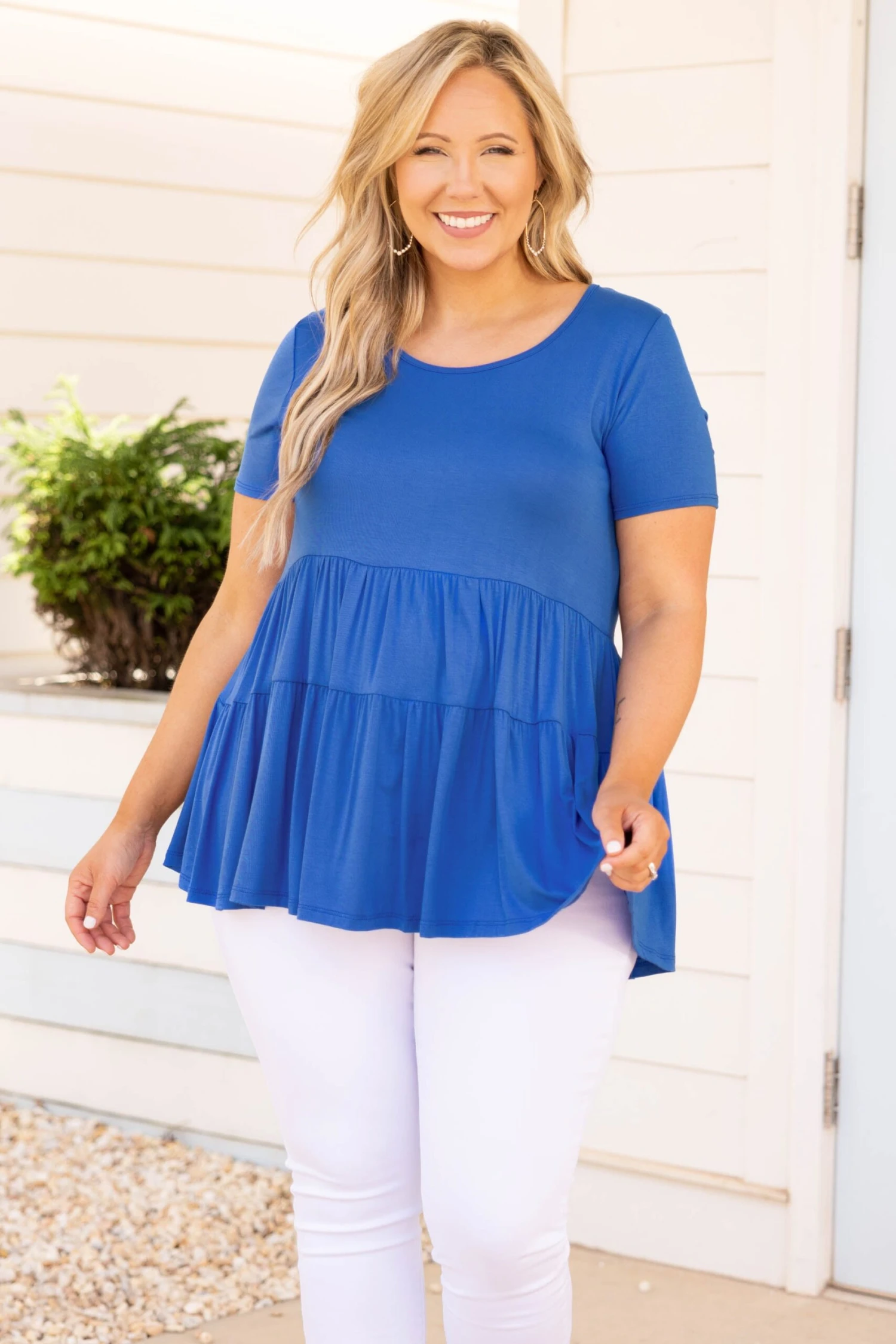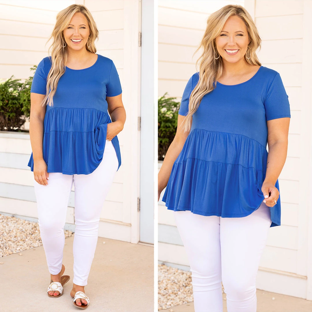 Put this fun top on and throw yourself a pacific coast party! The blue color is so chic making such a fashion statement! The babydoll style is so flattering on all body types and the soft fabric makes this so easy to throw on for anything! Style this babe with some skinnies and sandals for a stylish look!
