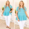 Put this fun top on and throw yourself a pacific coast party! The ocean blue color is so fun making such a fashion statement! The babydoll style is so flattering on all body types and the soft fabric makes this so easy to throw on for anything! Style this babe with some skinnies and sandals for a stylish look!