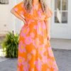 You need this beauty in your life! This dress features a bold orange color with a lovely floral pattern that is so sweet! The crisscross neckline adds a touch of elegance while the cinched waistline creates a flattering silhouette! Plus, the functional pockets provide convenience and practicality! Stand out in style and comfort with this bold and versatile dress!