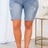 We simply adore these shorts! They are perfect for those seeking a trendy and stylish look.! With a light wash and distressed design, these shorts are sure to make a statement! Not only are they stylish, but they’re also incredibly comfortable and have a figure flattering fit! Pair these cuties with a cute bodysuit and sandals for a classic chic look!