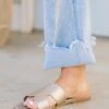 Elevate your beach fashion with the Palm Shores Sandals in a trendy gold shade! Designed with an empress sandal feature, these sandals provide lasting comfort and effortless style! Step into luxury and make a statement with every step!