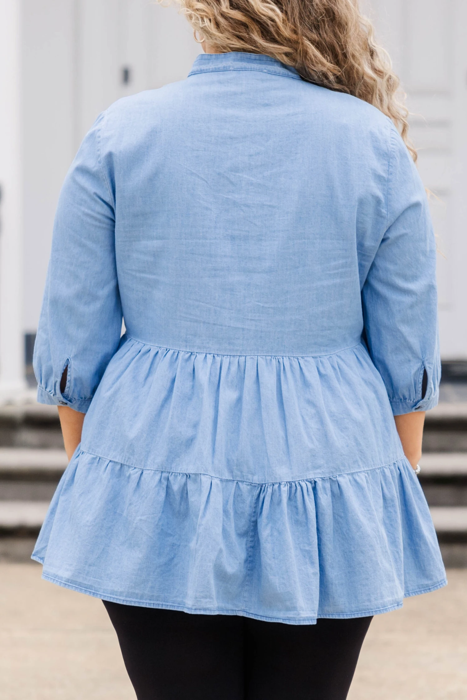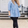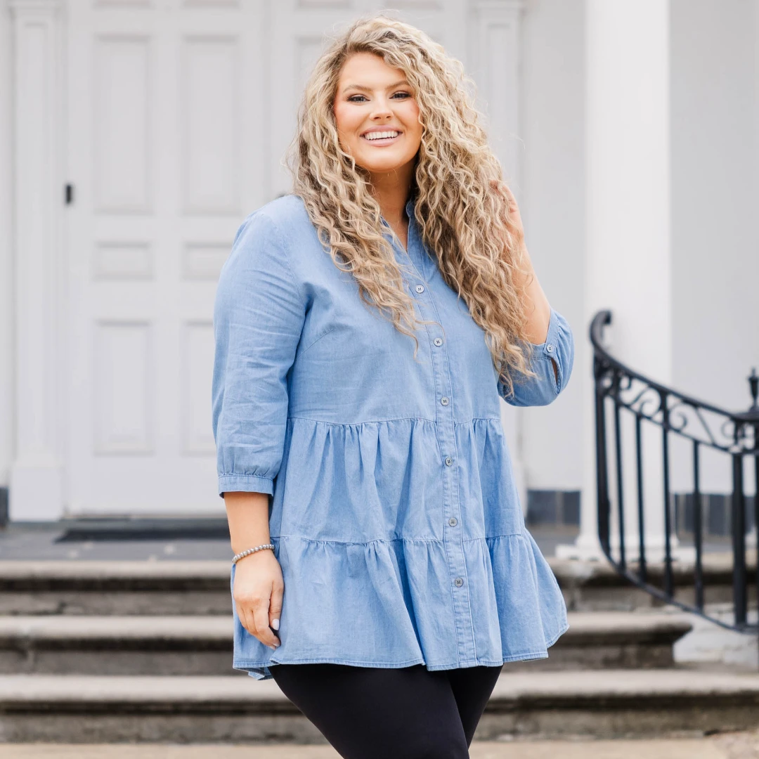 You + this tunic has a nice ring to it! Featuring a trendy light wash and a flowy fit, this tunic pairs perfectly with a range of colored denim or leggings for a sassy chic look! A stylish way to stay comfortable in any setting!