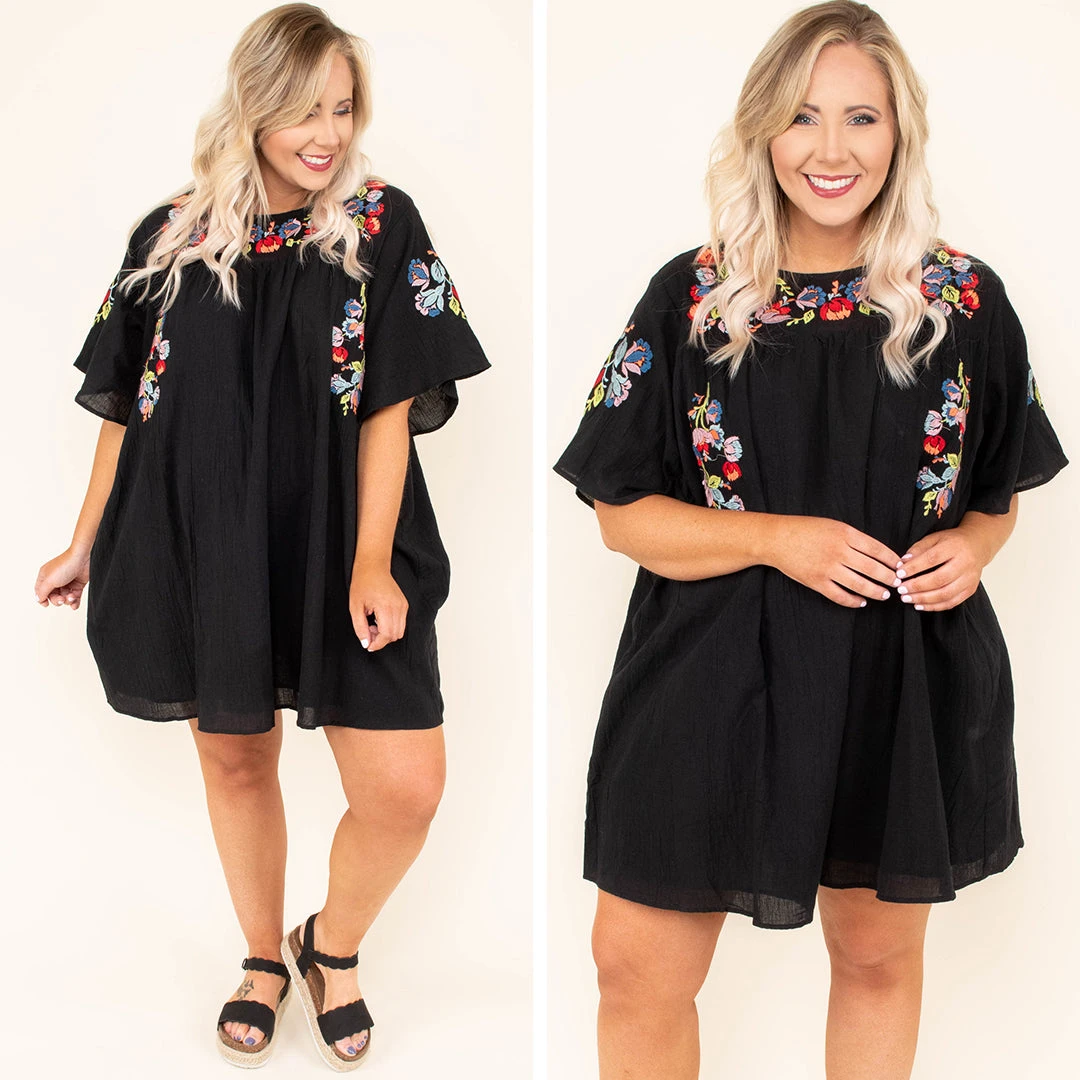 Paradise is calling and we must go!! This gorgeous embroidery dress is great for tropical getaways! It’s so breezy and light! Pair this beauty with a cute pair of sandals and fun earrings for a stunning outfit!