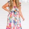 Enhance your summer wardrobe with our Passport To Paradise Dress! This sleeveless dress features a smocked bodice and vibrant tropical print, perfect for your next getaway! Pack it and be ready for any adventure!