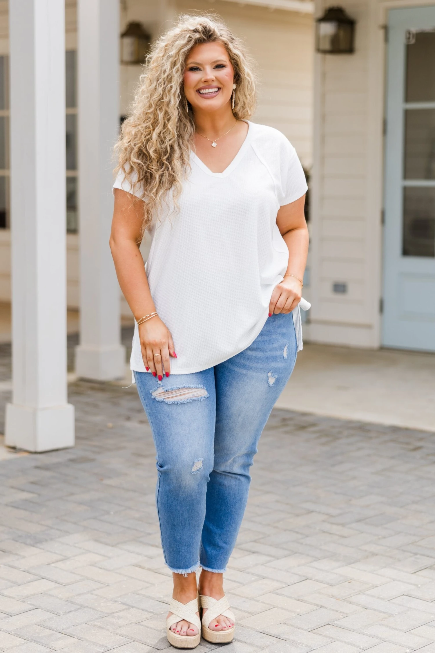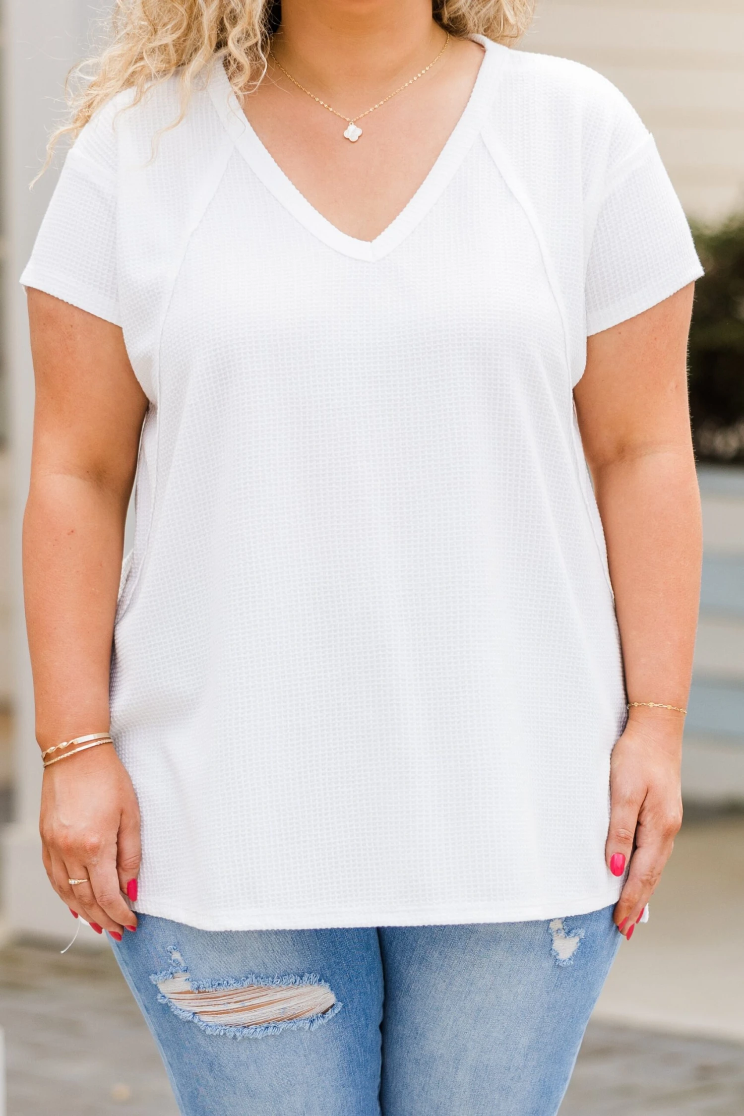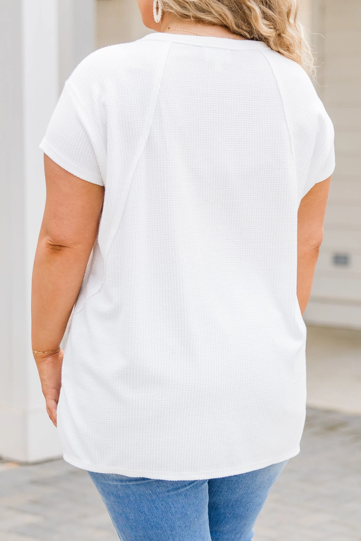 Stay comfortable and stylish in this adorable top! Featuring a pretty ivory color and a unique textured design, this cutie is perfect for a casual day out! The exposed seams add a touch of edginess to this must-have piece!Â