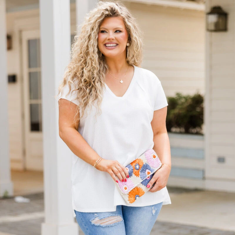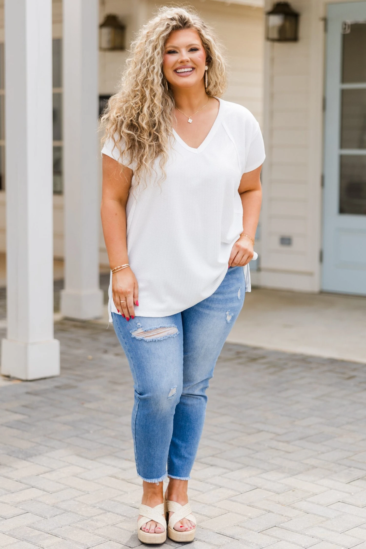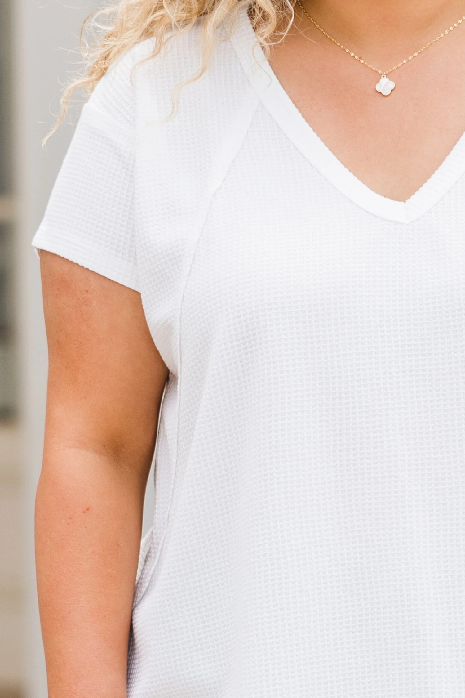 Stay comfortable and stylish in this adorable top! Featuring a pretty ivory color and a unique textured design, this cutie is perfect for a casual day out! The exposed seams add a touch of edginess to this must-have piece!Â