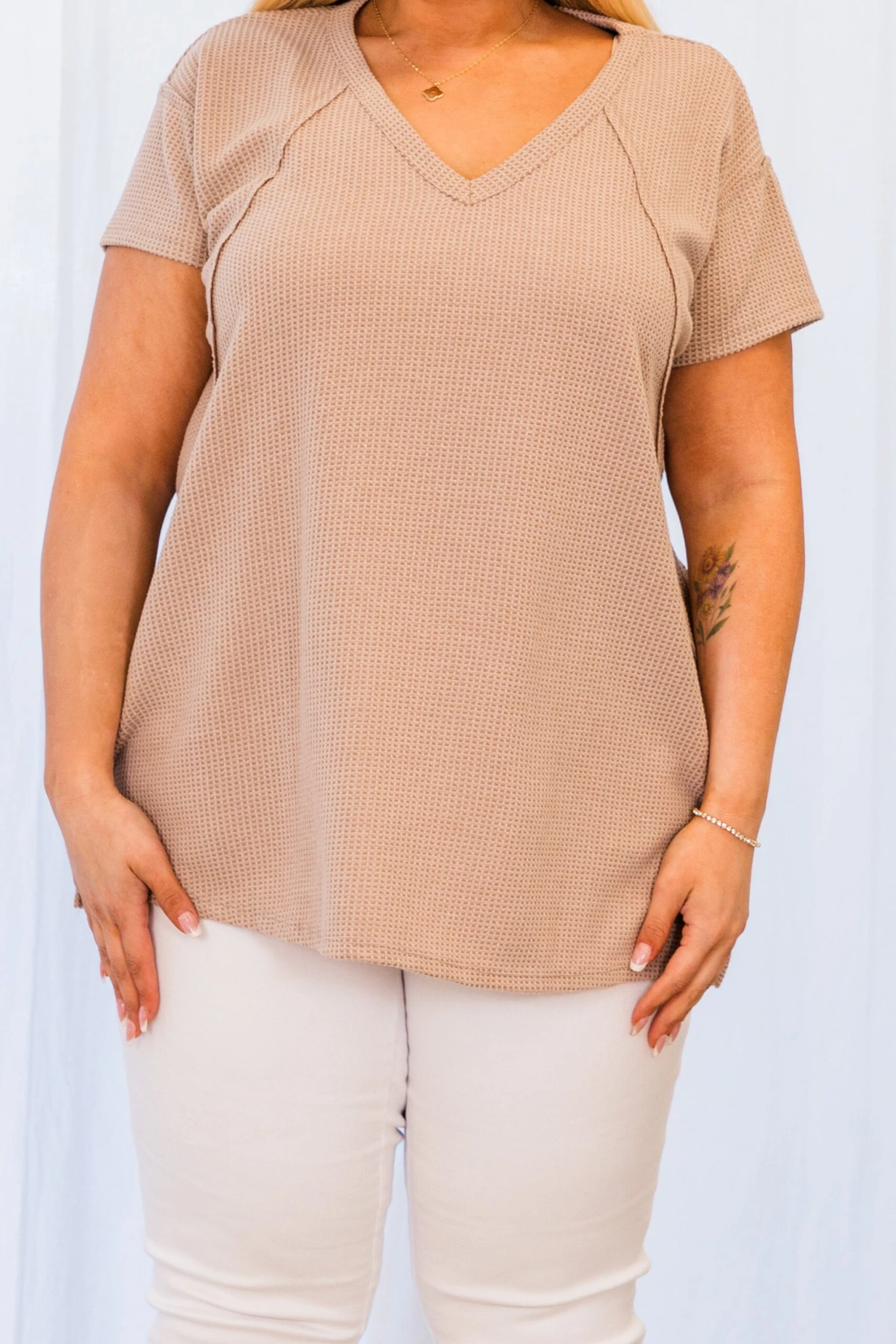 Stay comfortable and stylish in this adorable top! Featuring a pretty mocha color and a unique textured design, this cutie is perfect for a casual day out! The exposed seams add a touch of edginess to this must-have piece!Â