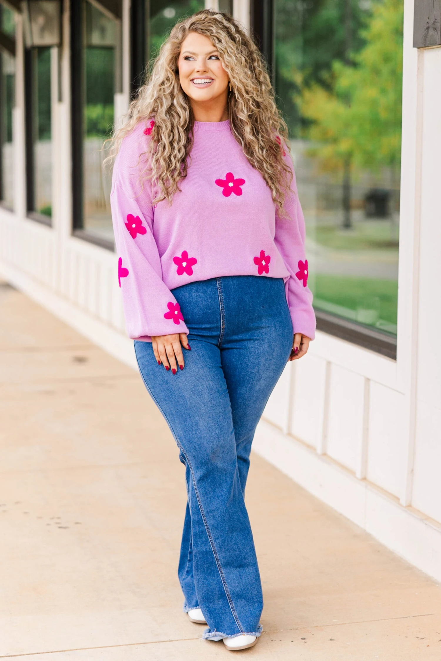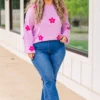 We would love a peony for your thoughts on this gorgeous sweater! Crafted from ultra-soft fabric, the bold purple and fun floral pattern keep you comfortable and fashionable! Perfect for keeping cozy all season!