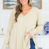 Stay cozy and stylish with this sweater! Made with butter soft material, it features a relaxed fit, ribbed hem & cuff, and a v-neck with long sleeves for ultimate comfort! The front seam, hi-low hem, and side slit add a touch of uniqueness to this must-have sweater!