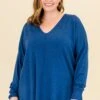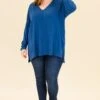Stay cozy and stylish with this sweater in heather light navy! Made with butter soft material, it features a relaxed fit, ribbed hem & cuff, and a v-neck with long sleeves for ultimate comfort! The front seam, hi-low hem, and side slit add a touch of uniqueness to this must-have sweater!